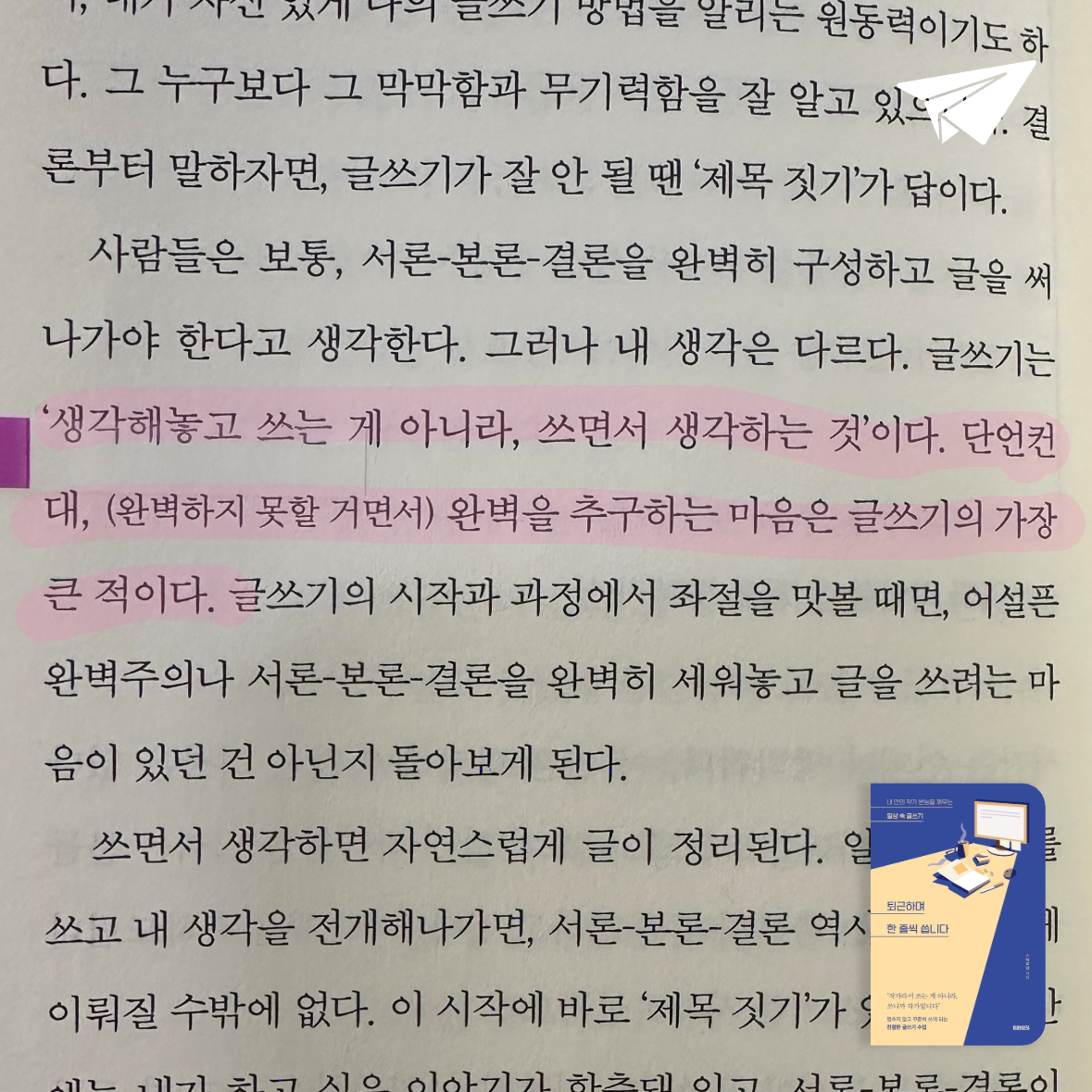 요약이 책은 고단한 하루를 마치고 퇴근하는 직장인들을 위해, 일상의 파편들을 글감으로 바꾸어 삶을 회복하는 방법을 제안하는 에세이입니다. 저자인 스테르담은 수많은 직장인이 겪는 열등감, 상심, 좌절, 그리고 반복되는 일상의 허무함을 '글쓰기'라는 도구를 통해 어떻게 승화시킬 수 있는지를 따뜻한 시선으로 풀어냅니다. 🏢