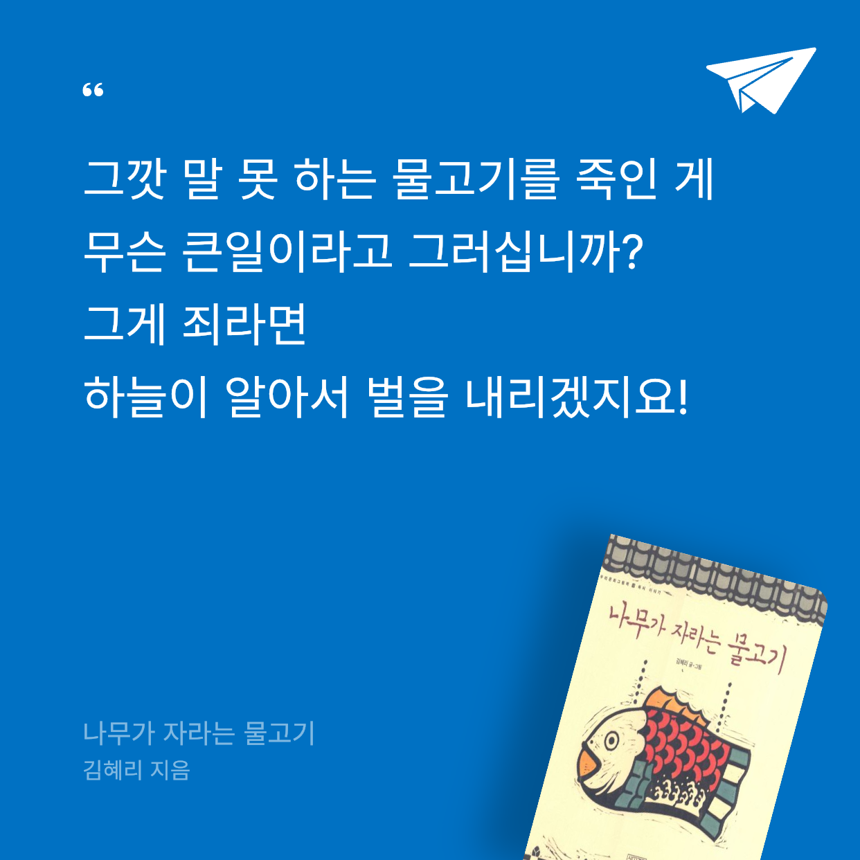 불교문화유산인 '목어'를 어린이들에게 소개하고 그 뜻을 전하는 그림책. 사람살이에 대한 진실한 생각이 담긴 이야기를 전한다. 못된 짓을 하면 반드시 벌을 받는다는 생각, 그래도 진심으로 뉘우치면 용서받을 수 있다는 생각, 그리고 쉼 없이 마음을 닦으며 살겠다는 생각 등이 그것이다.