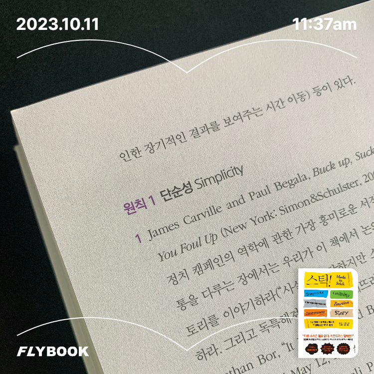 요약*스틱!(15주년 기념판)*은 칩 히스(스탠퍼드대 교수)와 댄 히스(경영 컨설턴트)가 2007년 펴낸 커뮤니케이션 가이드로, 2022년 웅진지식하우스에서 15주년 기념판으로 출간되었다. 📘 이 책은 사람들의 기억과 행동에 오래 남는 메시지의 비밀을 ‘SUCCESs’라는 6가지 원칙—단순성(Simple), 의외성(Unexpectedness), 구체성(Concreteness), 신뢰성(Credibility), 감성(Emotion