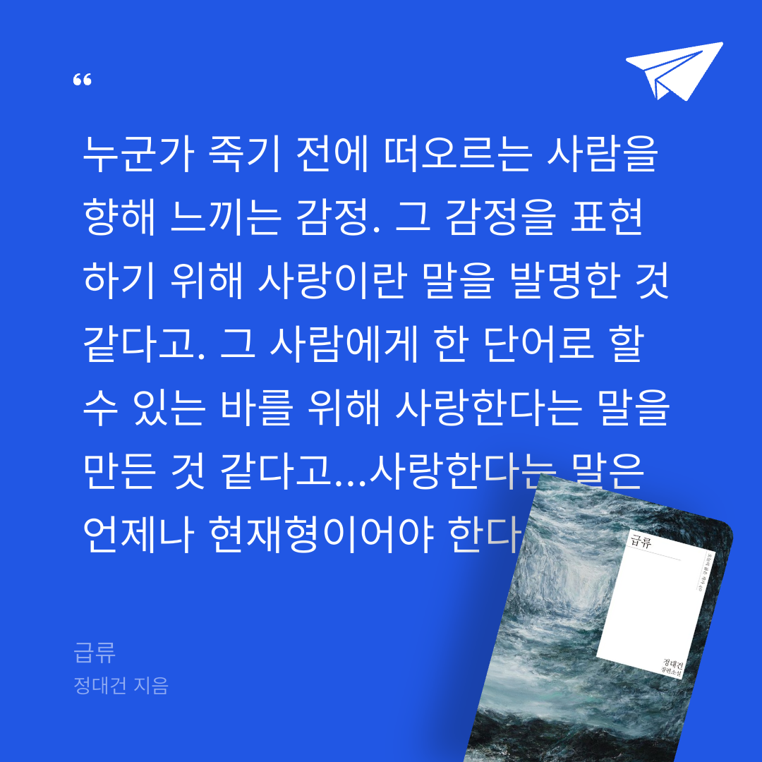 2020년 《한경신춘문예》에 장편소설 <GV 빌런 고태경>이 당선되어 작품 활동을 시작한 소설가 정대건의 두 번째 장편소설 <급류>가 오늘의 젊은 작가 시리즈 40번으로 출간되었다. <급류>는 저수지와 계곡이 유명한 지방도시 ‘진평’을 배경으로, 열일곱 살 동갑내기인 ‘도담’과 ‘해솔’의 만남과 사랑을 그린 소설이다.