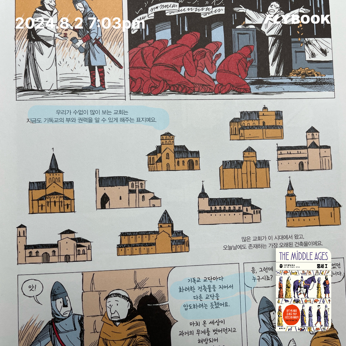 요약《중세 1: 만화로 배우는 서양사 (암흑의 시대 중세를 살던 사람들의 이야기)》(ISBN: 9791157845019)는 플로리앙 마젤(Florian Mazel)이 저술하고 뱅상 소렐(Vincent Sorel)이 그림을 맡아 2021년 4월 한빛비즈에서 이하임 번역으로 출간한 그래픽 노블로, 약 168쪽 분량이다. 프랑스 렌 2대학 교수이자 중세 귀족과 교회 연구의 권위자인 마젤은 이 책에서 9101123년(1012세기) 초기 중