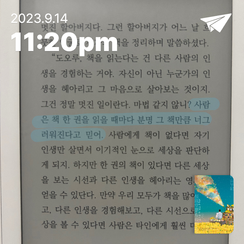 “그리운 사람을 만날 수 있는 기적이 있다면 지금 가장 만나고 싶은 사람은 누구입니까” 《오후도 서점 이야기》《별을 잇는 손》을 이은 시골 작은 서점을 둘러싼 따뜻하고 신비로운 이야기 따뜻한 마음으로 잇세이를 품어준 오후도 서점이 있는 한적한 시골 마을 사쿠라노마치. 이 작은 마을에는 책을 사랑하는 사람들 수만큼 신비한 일도 가득하다. 산을 가로지르는 바람이나 흐르는 강물 소리에서 이 세상 것이 아닌 존재를 느끼기도 한 잇세이. 서로 다른 이유로 마을을 찾은 이들도 잊을 수 없는 일을 경험하게 된다. 과연 이 산골짜기 마을이 간직한 비밀은 무엇일까? 상처와 슬픔을 극복하며, 책을 사랑하는 마음 그대로, 누군가와 함께한 추억과 그리움으로 연결되는 마법과 같은 이야기는 어느덧 우리가 잊고 있던 진정성에 대해 생각하게 한다. 줄거리 1장 가을 괴담 어른들에게는 별을 본다고 거짓말을 하고 친구인 후타, 오토야와 함께 마을 산속 벼랑에 있는 유령이 산다는 외딴 저택을 향한다. 그러나 비바람과 함께 천둥번개가 치는 바람에 도오루는 담벼락에서 떨어져 정신을 잃고 만다. 눈을 떠보니 저택 안. 도오루는 그곳에서 소중한 기억을 간직한 책, 《하늘색 기사》를 만나 기뻐하는데……. 2장 여름, 길 잃은 아이 긴가도 서점의 점장 야나기타 로쿠로타는 배웅하겠다는 잇세이를 뒤로하고 사쿠라노마치에서 조금 멀리 떨어진, 한여름의 산길에서 길을 잃고 만다. 해는 저물고, 통신 서비스 지역은 벗어났고, 산짐승이 나오는 곳에서 불안해하던 그는 어린 시절 사촌 누나에게 들었던, 조난을 당했을 때 대처하는 방법을 떠올리자 잊고 있던 기억들도 함께 되살아난다. 그리고 그것에서 그리운 목소리들을 만난다. 3장 아기 여우의 편지 잇세이를 좋아하는 소노에의 소꿉친구이자, 긴가도 서점 문예 담당 점원인 미카미 나기사는 휴가를 맞아 사쿠라노마치에 있는 오후도 서점을 방문하기로 한다. 기차역에서 고갯길을 넘어 가려던 미카미 나기사는 그 길에서 그토록 미워했던 아버지이자 유명 편집자였던 나츠노 고요와 마주한다. 4 등대지기 서로 돕고 신뢰하지만 비밀을 간직하고 싶다면 굳이 따져 묻지 않는 사쿠라노마치 사람들조차 호기심을 품고 있는 푸른 눈의 늙지 않는 노인. 신비한 능력이 있는 오후도 서점 고양이 앨리스. 그리고 그 둘의 눈에만 보이는 한 소녀. 그 소녀는 누구이고, 왜 잇세이 곁을 맴도는 걸까? 푸른 눈의 노인은 정체가 무엇일까?