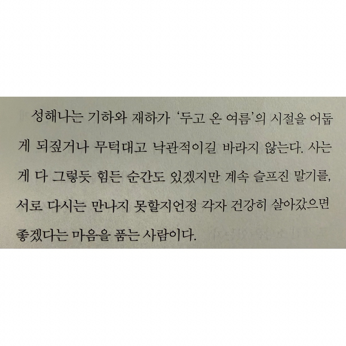 요약성해나 작가의 첫 장편소설 '두고 온 여름'은 갑작스럽게 형제가 된 두 소년, 기하와 재하의 이야기를 다룬 작품입니다. 🏠