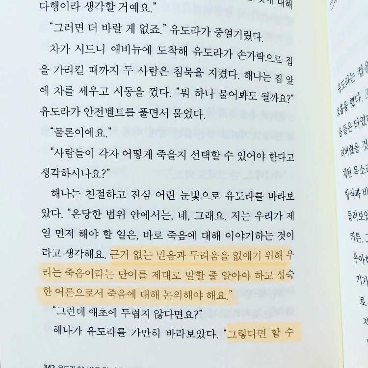 “나는 늙음에 굴복하지 않을 것이다. 거기에 저항하고, 거세게 걷어차버릴 것이다.” “유도라 할머니! 아직 살아 있어요?” 가족들이 모두 먼저 떠난 뒤 홀로 사는 85세 유도라 허니셋. 날마다 선글라스를 끼고 당당히 수영을 가는 멋쟁이 할머니지만 사는 게 딱히 재밌지는 않다. 그때 인생을 바꿀 엄청난 계시가 그녀를 찾아온다. 병원에서 또래 할머니한테 안락사 안내물을 전해 받은 것. 좋아, 바로 이거다! 그런데 스위스 병원부터 유도라의 기상천외한 이웃 꼬마 로즈, 장난스러운 또래 할아버지 스탠리까지 그녀의 가슴 두근거리는 희망을 가로막는다. 내 삶을 어떻게 살지 선택해왔듯이 어떻게 죽을지도 선택하겠다는데 도대체 뭐가 문제야? 나는 멀쩡하고 잘 지내고 있답니다. 그러니까 내 맘대로 죽게 해줘요!