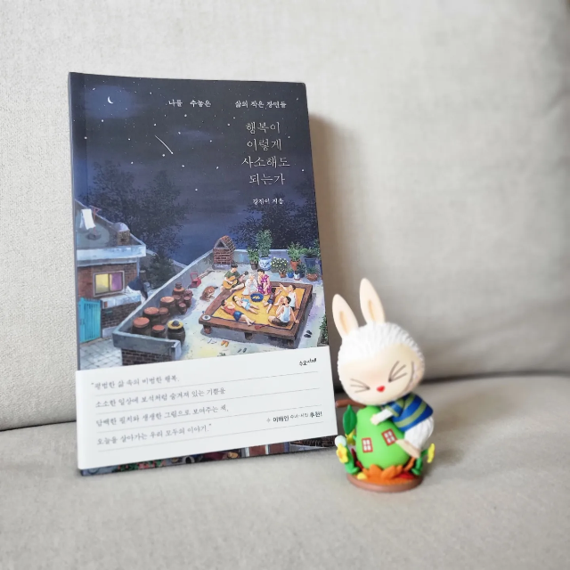 따끈따끈한 『행복이 이렇게 사소해도 되는가』를 받아들자마자 단숨에 한 권을 다 읽었다. 그리고 그 날밤 다시 차를 마시며 한 번, 다음 날 아침 햇빛 아래에서 또 한 번 읽었다. 세번이나 연달아 읽으며 따뜻함에 흠뻑 취해있는데, 반찬을 주러 왔던 엄마가 책을 훑어보다가 한마디 툭 한다. “옛날에 우리 00 아파트 샀을 때, 쪼들려서 매일 거실에 이불 펴고 잘 때- 엄마는 그때가 진짜 행복했어.” 순간 까맣게 잊고 살던 시절이 거짓말처럼 확 생각나고 그때의 행복이 온 가슴에 들어찼다. 엄마와 나는 히비스커스를 마시다 말고, 히비스커스보다 더 빨간 코가 되어 추억을 회상했다.