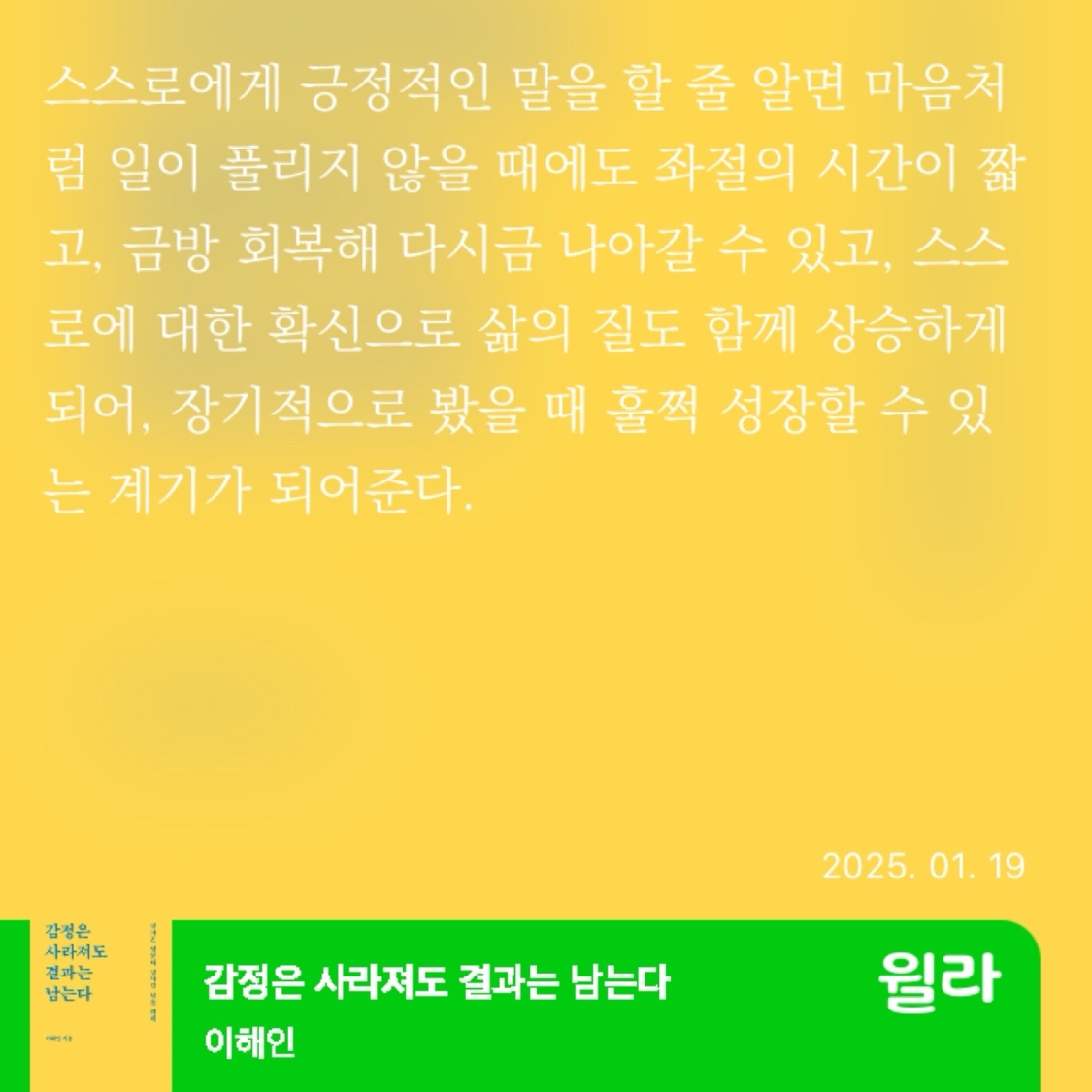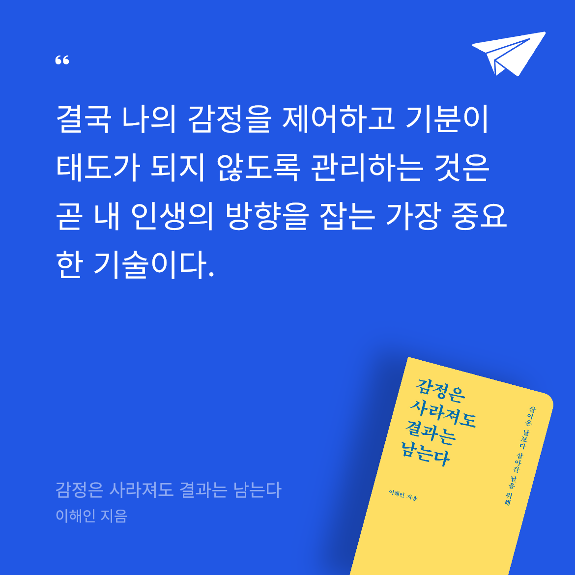 요약『감정은 사라져도 결과는 남는다 (살아온 날보다 살아갈 날을 위해)』는 이해인이 2023년 6월 필름(Feelm)에서 출간한 에세이로, ISBN 9791198249340을 통해 기록되었다. 📖 약 264페이지 분량의 이 작품은 YES24 리뷰 총점 9.6(350건)을 기록하며, “감정 관리와 삶의 태도를 유쾌하고 따뜻하게 풀어낸 성장 에세이”로 평가받는다(). 저자 이해인은 24세에 창업한 디지털 광고 에이전시 ‘소셜링’과 미디어 커머스 ‘오버컴