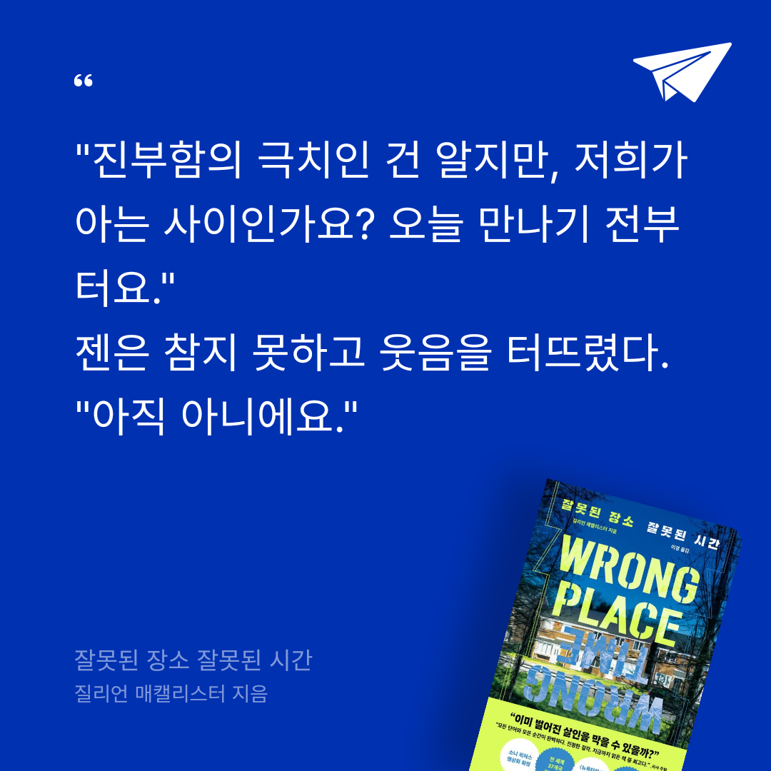 요약잘못된 장소 잘못된 시간은 영국 작가 질리언 매캘리스터(Jillian McAllister)의 범죄 스릴러 소설로, 2022년 원작(Wrong Place Wrong Time)이 출간된 후 2023년 시옷북스에서 이경 번역으로 한국에 소개되었다. 📚 ISBN 9791192579818을 가진 이 작품은 510쪽 분량으로, 출간 즉시 《뉴욕타임스》와 아마존 베스트셀러에 오르며 《가디언》, 《선데이타임스》 등에서 ‘올해의 책’으로 선정되었다. 전 세계 37개국 판권 계약과 소니 픽처스