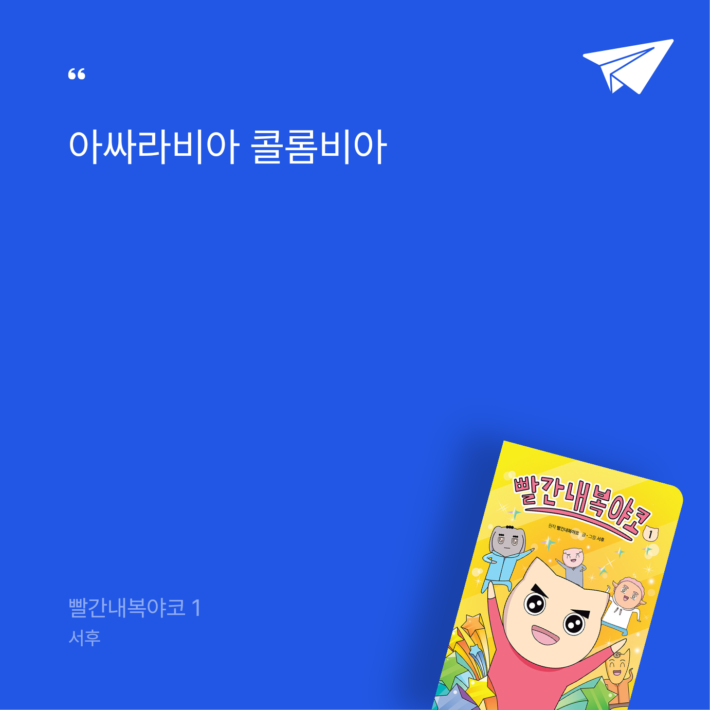 요약『빨간내복야코 1』은 서후가 글과 그림을 맡아 2023년 7월 26일 샌드박스스토리 키즈에서 출간한 어린이 만화로, ISBN 9791192504254를 가진 140쪽 분량의 양장본이다. 📖 유튜브 채널 ‘빨간내복야코’(구독자 112만 명)의 인기 영상을 바탕으로 한 이 코믹스는 중독성 높은 노래와 귀여운 애니메이션으로 사랑받는 콘텐츠를 만화로 재구성했다. 서후는 만화 창작과 일러스트를 전공한 작가로, 『슈뻘맨의 숨은 과학 찾기』, 『급식왕 GO』, 『민쩌미』 등의 작품으로 어린이들에게 유쾌한 웃
