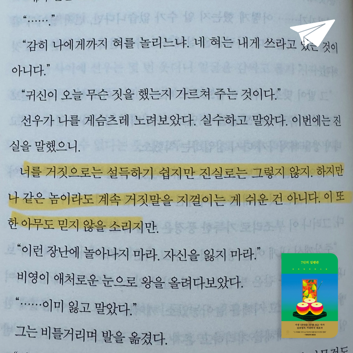 요약김보영의 7인의 집행관은 2013년 폴라북스에서 출간되고 2023년 전면 개정판으로 재출간된 첫 장편 SF 소설로, 2014년 SF 어워드 장편소설 부문 대상을 수상한 작품이다. 한국 SF의 대표 작가로 평가받는 김보영은 이 소설에서 정체성, 죄와 벌, 진실과 거짓이라는 철학적 주제를 다차원적 세계관과 강렬한 서사로 탐구한다. 봉준호 감독이 “숨 막히게 아름다운 한 편의 영화”라 극찬한 이 작품은 누아르, 판타지, 디스토피아, 미스터리를 넘나들며 독자를 존재론적 질문 속