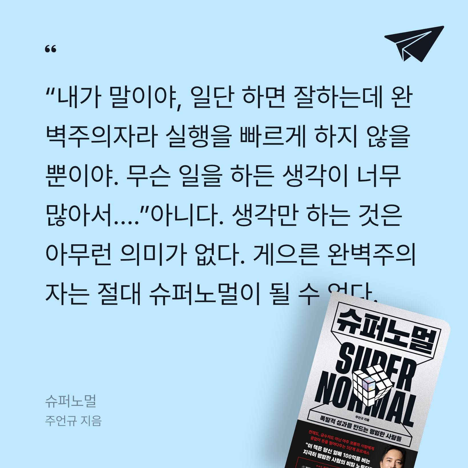 요약*슈퍼노멀 (폭발적 성과를 만드는 평범한 사람들)*은 주언규가 2023년 8월 30일 웅진지식하우스에서 출간한 자기계발서로, ISBN 9788901274379를 통해 약 255쪽 분량으로 펴내졌다. 📖 저자는 유튜브 채널 ‘신사임당’(구독자 180만 명)을 20억 원에 매각하고, 렌털 스튜디오, 스마트스토어, 뷰트랩 등 다양한 사업으로 연매출 100억 원을 돌파한 자수성가형 기업가다. 그는 월급 160만 원의 평범한 직원에서 30대에 경제적 자유를 이룬 경험을 바