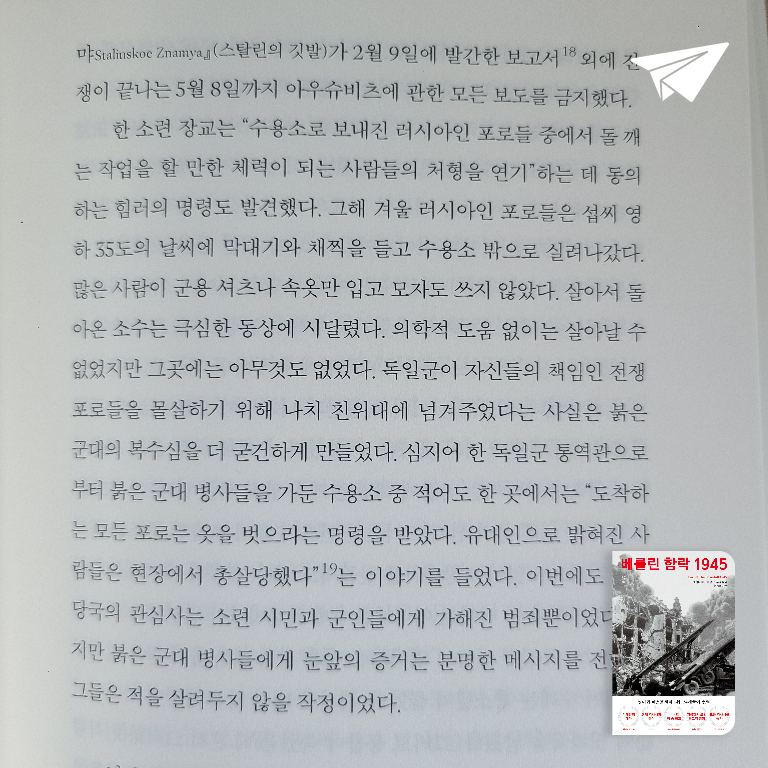 앤터니 비버는 제3제국의 최후의 붕괴라는 악몽에 사로잡힌 수백만 명의 경험을 재구성했다. 베를린 함락은 교만, 어리석음, 광신, 복수, 야만을 드러낸 끔찍한 이야기지만, 동시에 놀라운 인내와 자기희생, 모든 역경에 맞선 생존의 이야기이기도 하다.