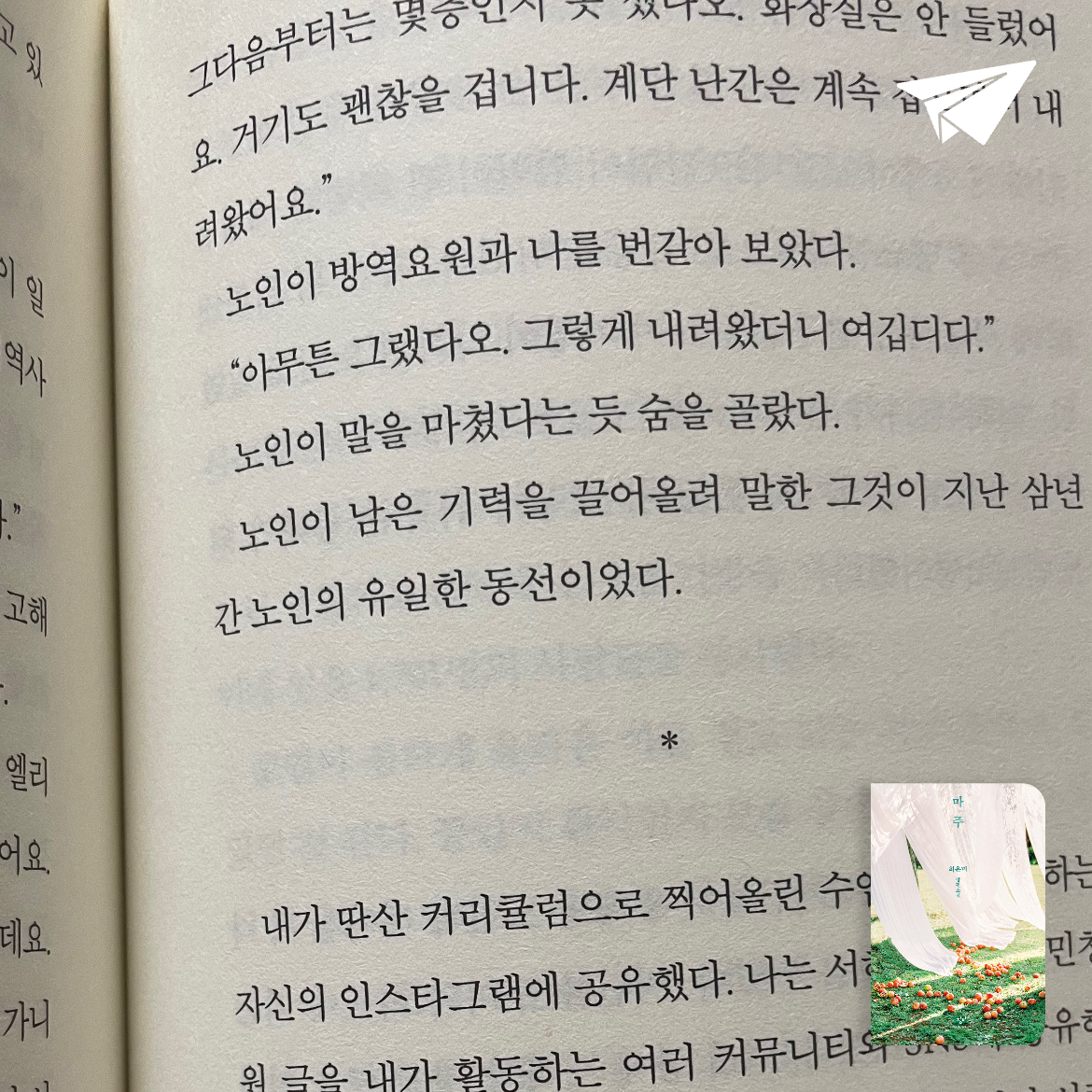 요약『마주』는 최은미의 장편소설로, 2020년 코로나19 팬데믹이라는 재난의 시기를 배경으로 인간관계의 단절과 고립, 그리고 그 속에서 다시 연결을 모색하는 이야기를 섬세하게 그려낸다. 소설의 중심에는 두 명의 40대 기혼 여성, 나리와 수미가 있다. 나리는 딸 은채의 아토피 때문에 천연비누를 만들기 시작해 홈 공방을 운영하다가 2020년 2월 상가를 임대해 사업을 확장한다. 그러나 팬데믹으로 사회적 거리두기가 강화되며 공방 운영은 어려워지고, 나리는 경제적 압박과 함께 주변과의 단절을 느낀
