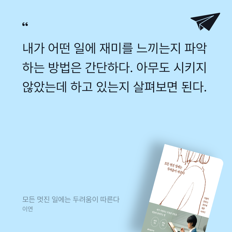 기분 전환이 필요할 때, 동기부여가 필요할 때, 고민이 있을 때, 힐링이 필요할 때 읽으면 좋아요.