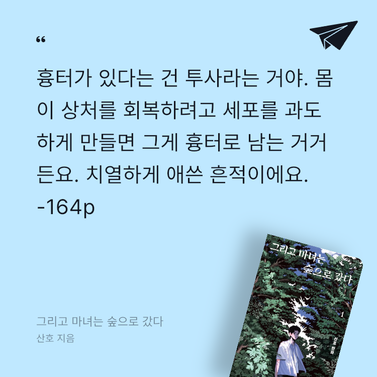 ‘산’은 오 년 전 자취를 감춰버린 ‘초원’을 그리워한다. 그들은 이십 년 전 일어난 산불로 고아가 되었다. 당시 겨우 열다섯 살이었던 초원은 자기보다 한참 어린 산을 거둬 보살피고 길러냈다. 서로가 있기에 혼자는 아니라 위안하며 살아가던 어느 날, 초원이 자취를 감추었다.