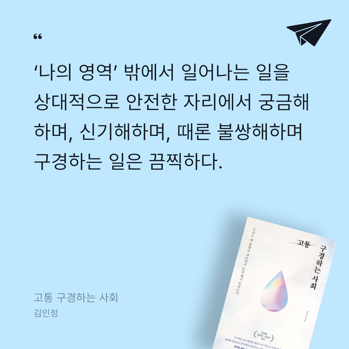요약『고통 구경하는 사회 (우리는 왜 불행과 재난에서 눈을 떼지 못하는가)』는 저널리스트 김인정이 쓴 에세이로, 현대 사회가 타인의 고통과 재난에 병적으로 집착하는 현상을 탐구한다. 📖 2023년 출간된 이 책은 수전 손택의 『타인의 고통』을 잇는 문제작으로, 뉴스와 소셜 미디어를 통해 고통을 소비하는 우리의 시선을 비판적으로 분석한다. 🌍 김인정은 한국을 넘어 세계 곳곳에서 목격한 참사와 애도의 현장을 바탕으로, 고통을 구경하는 행위가 개인과