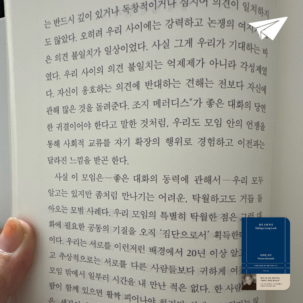 요약『멀리 오래 보기 (진정한 관점을 찾기 위한 기나긴 응시)』는 미국의 저명한 비평가이자 회고록 작가 비비언 고닉(Vivian Gornick)이 쓴 비평 에세이집으로, 2023년 9월 에트르 출판사에서 한국어 번역본(ISBN: 9791197826139)이 출간되었다. 📚 이 책은 고닉의 50년 문학 인생을 기념하며, 문학, 페미니즘, 자기 서사에 대한 그녀의 깊은 통찰을 담은 20여 편의 에세이를 선별했다. 고닉은 ‘개인 비평(personal critici