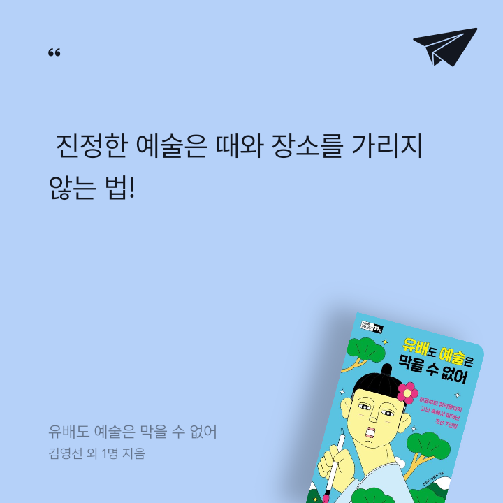 16세기부터 19세기, 즉 조선 시대 중·후반에 활동하다가 유배되었던 예술가들의 삶을 조명한다. 허균, 윤선도부터 김만중, 이광사, 김정희, 정약용 그리고 조희룡까지 조선 중·후기 역사 속 7인의 삶과 예술 세계를 들여다보는 청소년 교양서다.