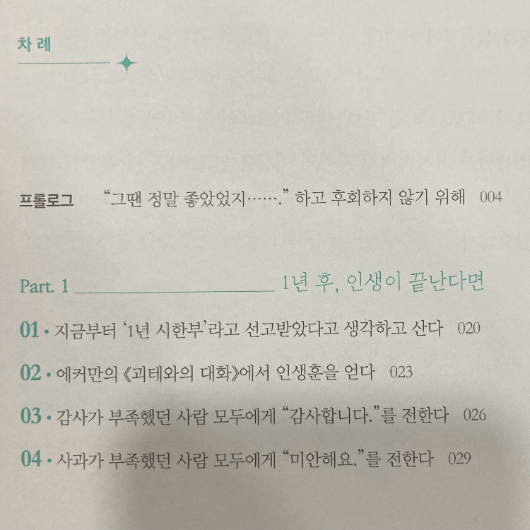 인간의 남은 수명을 일정 시간으로 한정하고, 결코 길지 않은 우리의 인생을 후회 없이 풍요롭고 행복하게 살기 위한 70가지 방법을 소개한다. 즉 죽음을 남의 일이 아니라 나의 일로 받아들이고 “그땐 정말 좋았었지…….” 하고 후회하지 않기 위해 지금 이 순간을 제대로 잘 살고, 제대로 잘 살아내기 위한 70가지 방법이다.