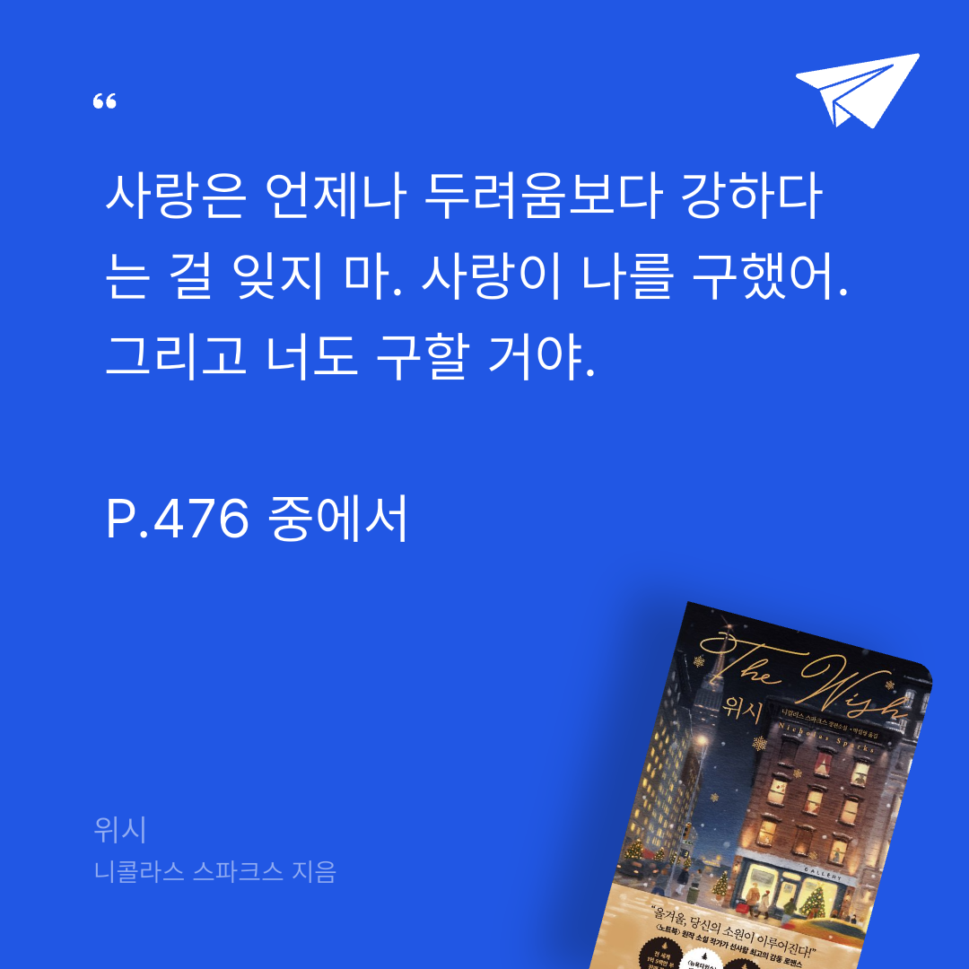 출간 즉시 〈뉴욕타임스〉 베스트셀러 1위에 오르며 전 세계에 다시 한번 ‘스파크스 신드롬’을 일으킨 니컬러스 스파크스의 신작 《위시》가 마침내 한국 독자들을 찾아왔다. 주인공 매기의 위대한 첫사랑과 기적 같은 만남, 그리고 마지막 크리스마스 소원을 담은 또 다른 걸작이다.