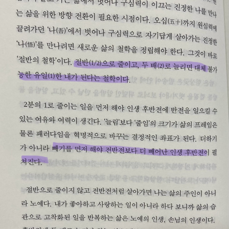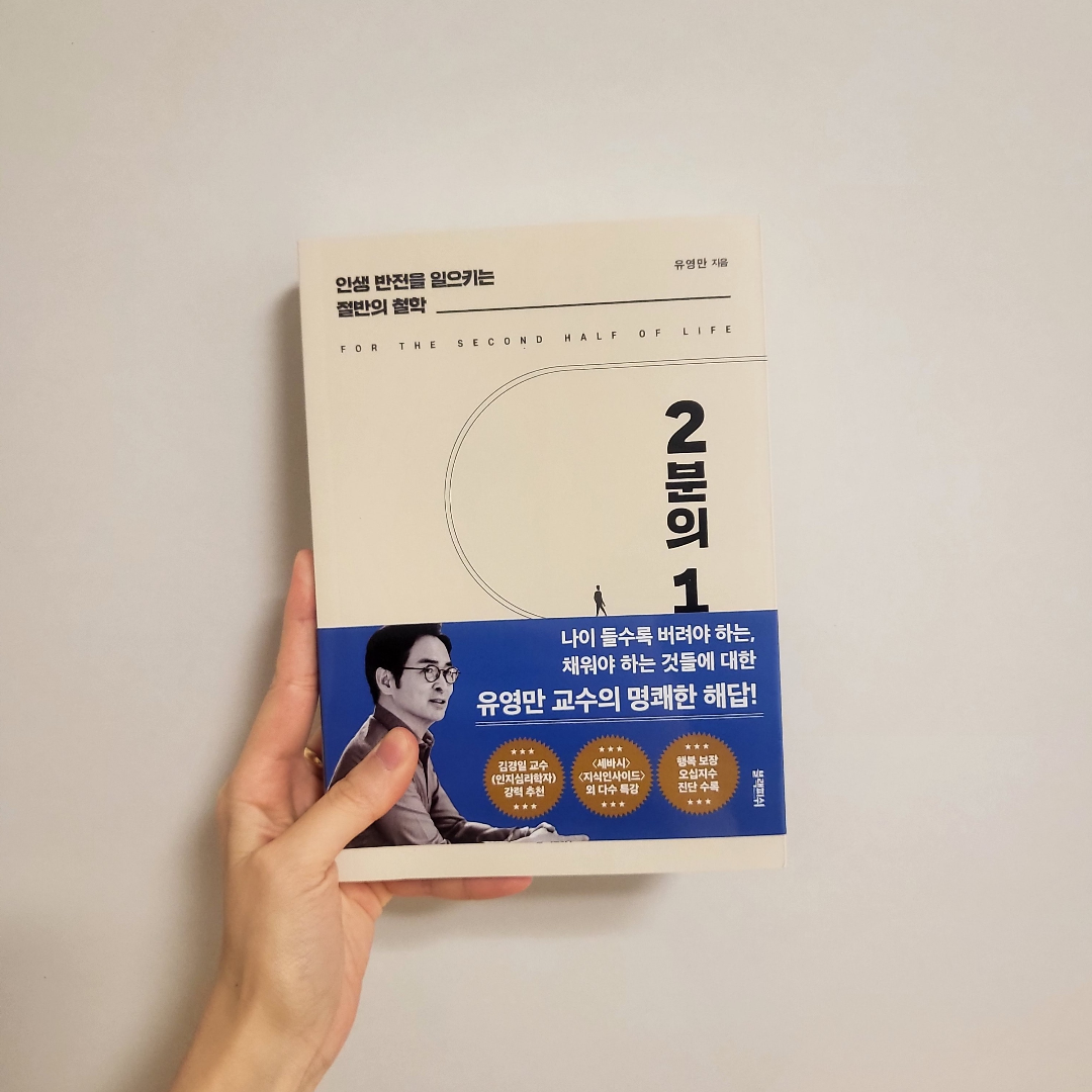 요약**2분의 1 (인생 반전을 일으키는 절반의 철학)**은 유영만 교수가 저술한 자기계발서로, 블랙피쉬에서 2023년 11월 16일 출간되었다(ISBN: 9788968334535). 352쪽 분량의 이 책은 한양대학교 교수이자 지식생태학자로 알려진 유영만이 ‘절반의 철학’을 통해 인생의 전환점을 만드는 방법을 제시한다. 지식의 대융합, 공기놀이 등으로 독창적 사고를 설파한 그는, 이 책에서 완벽주의와 과도한 욕심을 내려놓고 ‘절반’의 가치