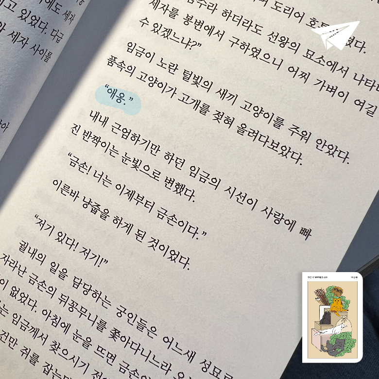 요약성은이 냥극하옵니다는 백승화 작가가 2023년 11월 28일 안전가옥을 통해 출간한 장편소설로, 조선 시대 숙종과 고양이 성은이의 만남을 유쾌하고 따뜻한 상상력으로 그린 작품이다(ISBN: 9791193024362). 📖 백승화는 애묘인으로서 고양이에 대한 깊은 애정과 역사적 상상력을 결합해, 숙종의 ‘냥줍’ 설화를 바탕으로 한 이 소설을 완성했다. 안전가옥의 스토리 PD와 협업하여 문헌에 기록된 숙종과 고양이의 일화를 소설적 내러티브로 확장했으며, 조선 궁궐을 배경으로 왕과 고양이의