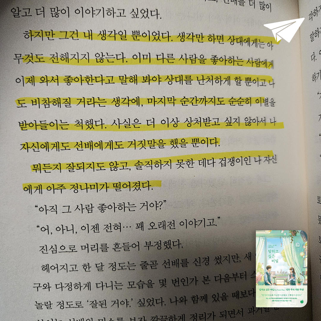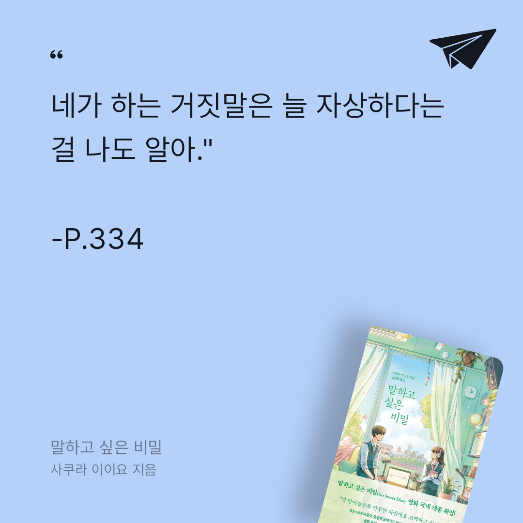요약말하고 싶은 비밀은 일본 작가 사쿠라 이이요의 하이틴 로맨스 소설로, 2023년 12월 8일 모모에서 김윤경 번역으로 출간되었다(ISBN: 9791193358245). 약 280쪽 분량의 이 작품은 원제 交換ウソ日記 (2017)로, 일본에서 누적 65만 부 판매, 2023년 영화화로 화제를 모은 4권짜리 시리즈의 첫 번째 이야기다(). 예스24는 “사춘기 감성을 섬세하게 담은 로맨스 걸작”이라 평했으며, 리뷰 평점 9.6을 기록하며 10대와 20대 독자들에게 큰 사랑을 받았다().