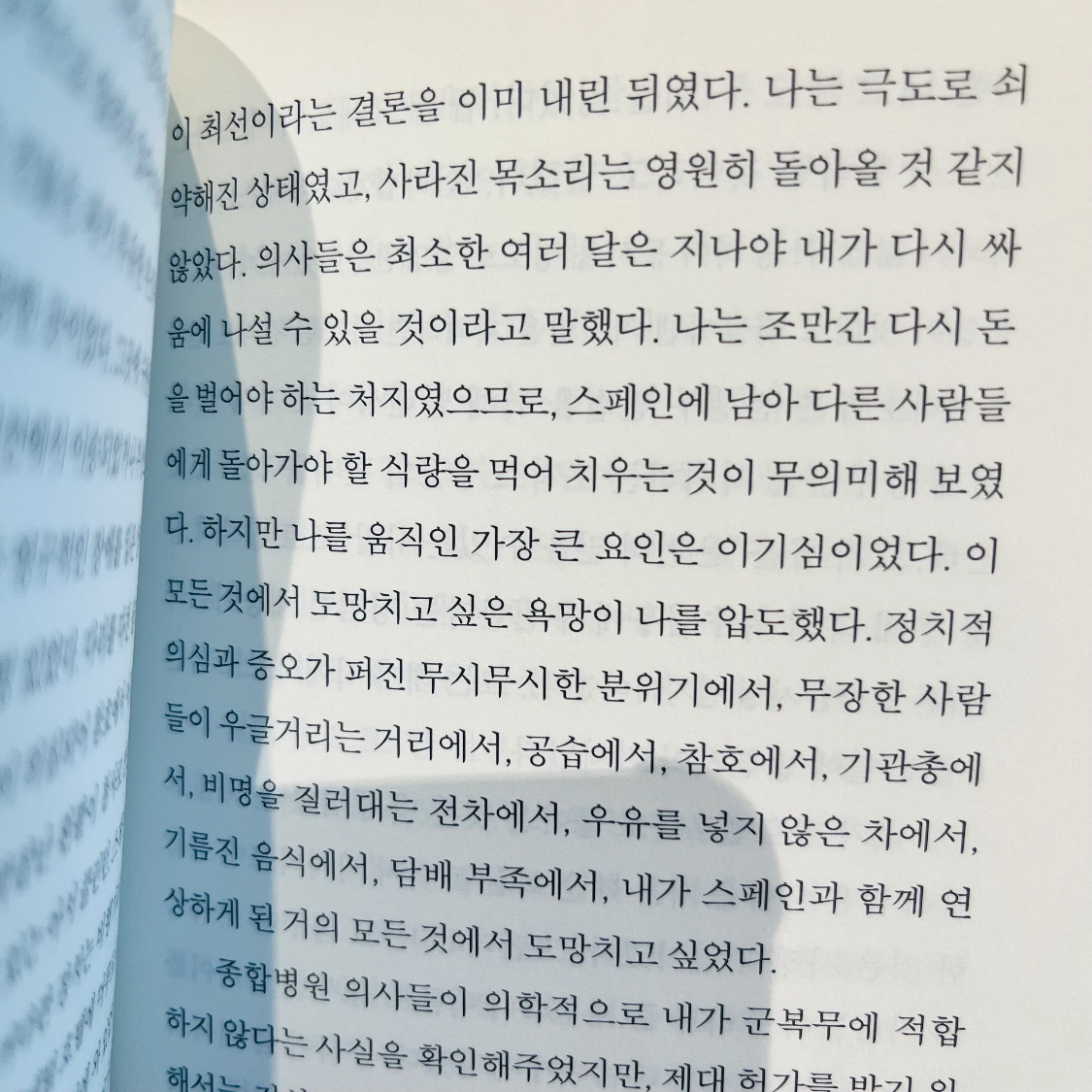 📖 내게 전쟁은 굉음을 내며 날아오는 각종 탄환, 사방으로 튀는 강철 조각과 동의어였다. 그러나 그 보다도 더 먼저 생각나는 것은 진흙탕, 이, 굶주림, 추위였다. 이상한 일이지만 나는 적보다 추위가 훨씬 더 무서웠다. 바르셀로나에 있는 동안에도 내내 추위에 대한 생각이 머리를 떠나지 않았다. 밤이면 침상에서 잠을 이루지 못하고 참호 속의 추위와 섬뜩한 새벽의 공격 대기, 얼어붙은 라이프를 들고 오랫동안 서야하는 보초 근무, 군화에 묻을 차가운 진흙을 생각했다. (p.42)