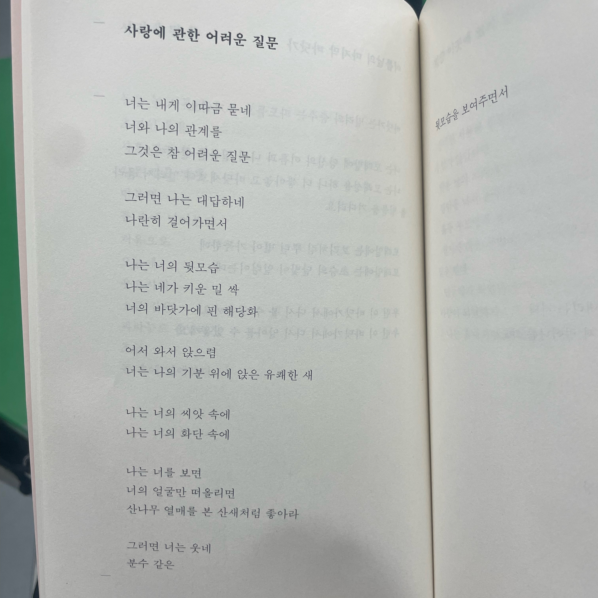 그런데 외할머니는 시를 절반쯤 외시곤 당신의 등 뒤에 낯선 누군가가 얄궂게 우뚝 서 있기라도 했을 때처럼 소스라치시며