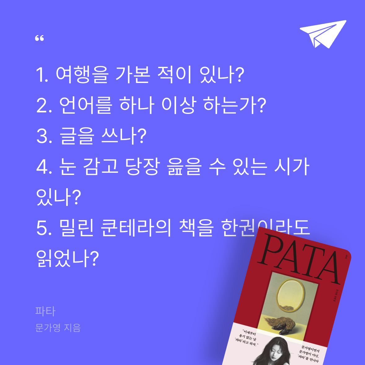 요약《파타 (문가영 산문집)》은 배우 문가영의 첫 번째 산문집으로, 2024년 3월 위즈덤하우스에서 출간되었다. 📖 문가영은 《여신강림》(2020), 《사랑의 이해》(2023) 등 드라마를 통해 섬세한 연기력으로 주목받은 데뷔 18년 차 배우로, 이번 작품에서 ‘파타’라는 새로운 자아를 통해 내밀한 사유와 감정을 풀어낸다. 독일에서 유년 시절을 보내며 고전문학과 독서에 깊은 애정을 키운 그녀는, 연기자라는 공적 페르소나를 벗고 진솔한 자신을 드러낸다. 이 책은 1부 ‘존재의 기록’, 2부 ‘