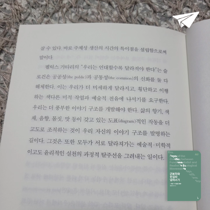 조금은 이론적이고, 어떻게 보면 정치적인 이야기여서 어려웠지만, 복잡다단한 녹색 운동의 근본을 들여다볼 수 있던 책 『근본파와 현실파 넘어서기』였다.