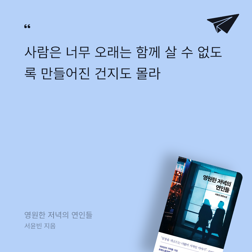 요약서윤빈 작가의 소설 《영원한 저녁의 연인들》은 상처받은 영혼들이 서로의 온기를 통해 치유해 나가는 과정을 섬세하고도 애틋한 문체로 그려낸 작품입니다. 이 소설은 '영원한 저녁'이라는 공간적 배경 속에서, 과거의 기억과 현재의 아픔을 안고 살아가는 인물들의 서사를 담담하게 풀어냅니다. 📖