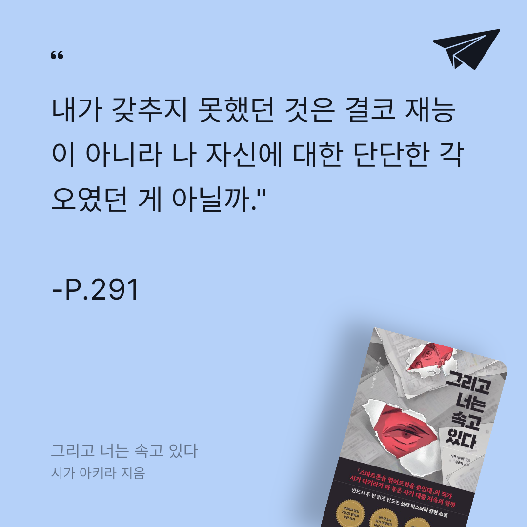 요약『그리고 너는 속고 있다』는 시가 아키라가 2022년 3월 (주)태일소담출판사에서 출간한 미스터리 소설로, ISBN 9791160274530을 통해 기록되었다. 📖 약 336페이지로 구성된 이 작품은 YES24 리뷰 총점 9.2(50건 이상), 판매지수 약 1,500을 기록하며, “디지털 시대의 사기와 인간 심리를 치밀하게 그린 긴장감 넘치는 스릴러”로 평가받는다(). 1963년 일본에서 태어난 시가 아키라는 닛폰 방송 제작자 출신으로, 2016년 『패스워드』로 제15회 이 미스터리가 대