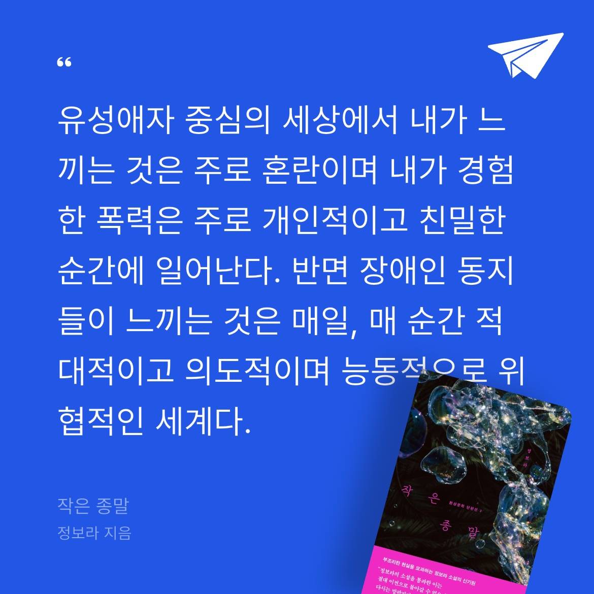요약『작은 종말』은 정보라가 2024년 6월 24일 퍼플레인(갈매나무)에서 출간한 단편소설집으로, ISBN 9791191842685를 통해 기록되었다. 📖 약 372페이지로 구성된 이 작품은 YES24 리뷰 총점 9.8(소수 리뷰), 판매지수 약 2,000을 기록하며, “현실보다 기묘한 환상문학의 정수”로 평가받는다(). 1975년 서울에서 태어나 서울대 러시아문학과를 졸업한 정보라는 『저주토끼』(2022 부커상 인터내셔널 최종후보, 2023 전미도서상 번역문학 최종후보)로 세계적 주목을 받으며 한국 환