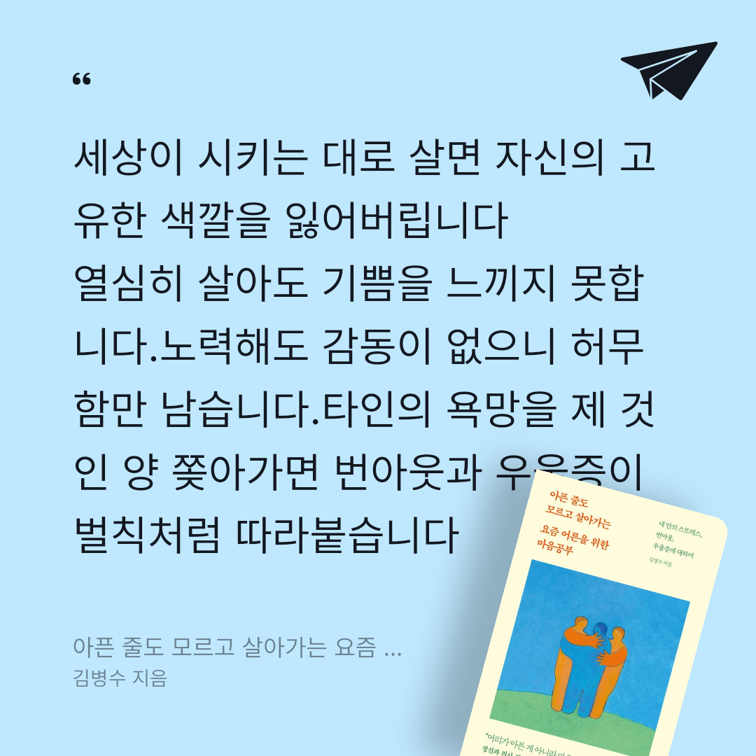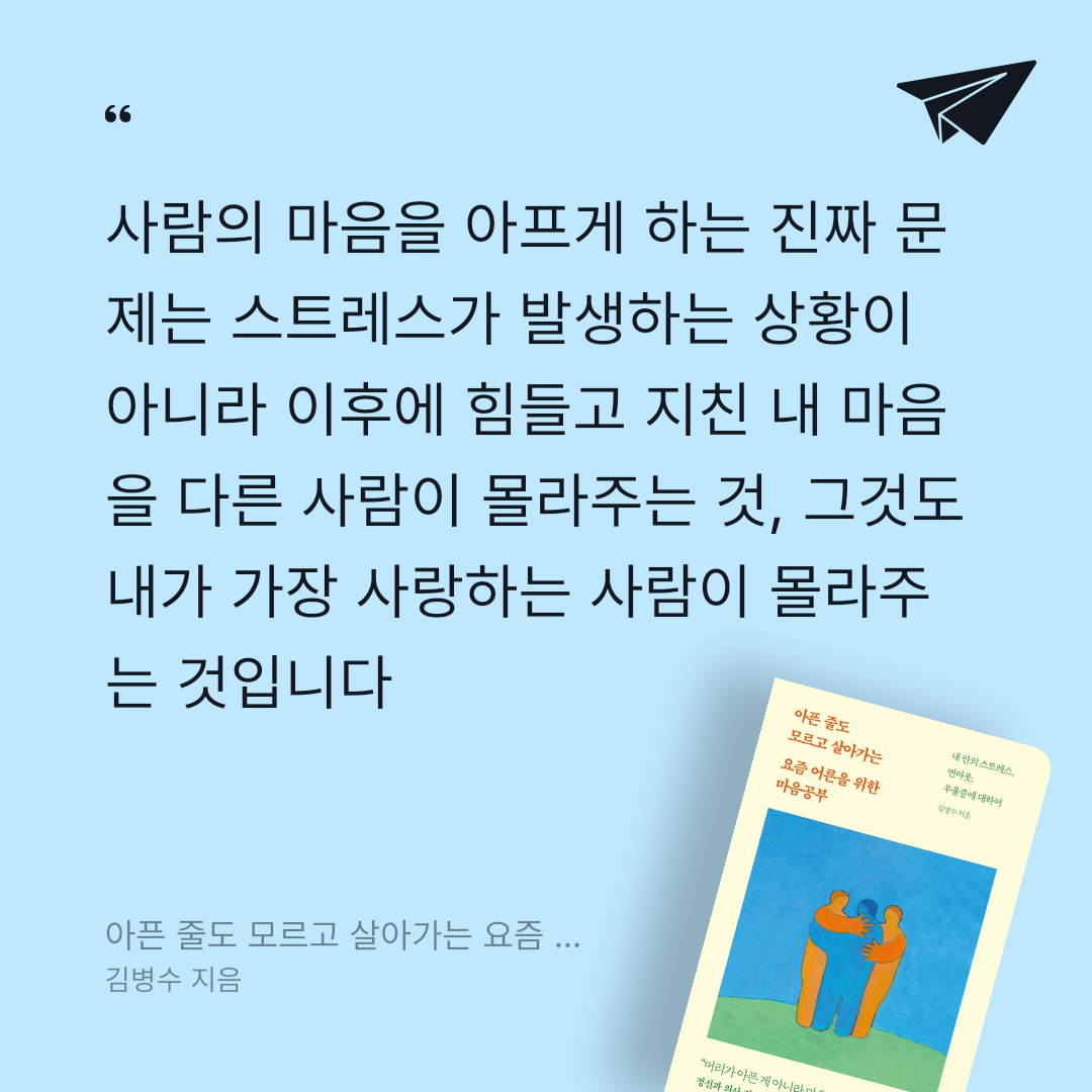 열심히 살아가는 이들을 응원하고 힘을 주기 위해 스트레스, 번아웃, 우울증에 대한 심리학적 원인부터 효과적인 관리법을 담았다. 청년부터 노년까지 20년 넘게 한국인의 스트레스, 번아웃, 우울증에 주목해온 정신과 전문의 김병수 원장과 복잡하고 힘든 마음을 하나씩 풀어가며 마음건강을 챙기는 심리수업이다.