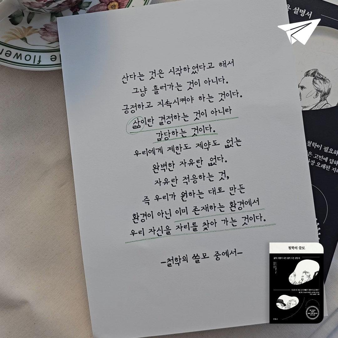 요약철학의 쓸모: 삶의 지침이 되는 철학 사용 설명서는 프랑스 철학자 로랑스 드빌레르가 쓴 인문 에세이로, 2024년 FIKA(피카)에서 박효은 번역으로 출간되었다. ISBN 9791193866146에 해당하는 이 책은 332쪽에 걸쳐 삶의 고통과 고민에 철학이 어떻게 답할 수 있는지 탐구한다. 모든 삶은 흐른다로 한국에서 20만 독자의 사랑을 받은 저자는, 이번에는 철학의 실질적 유용성을 주제로 니체, 데카르트, 스피노자, 한나 아렌트 등 철학자들의 사유를