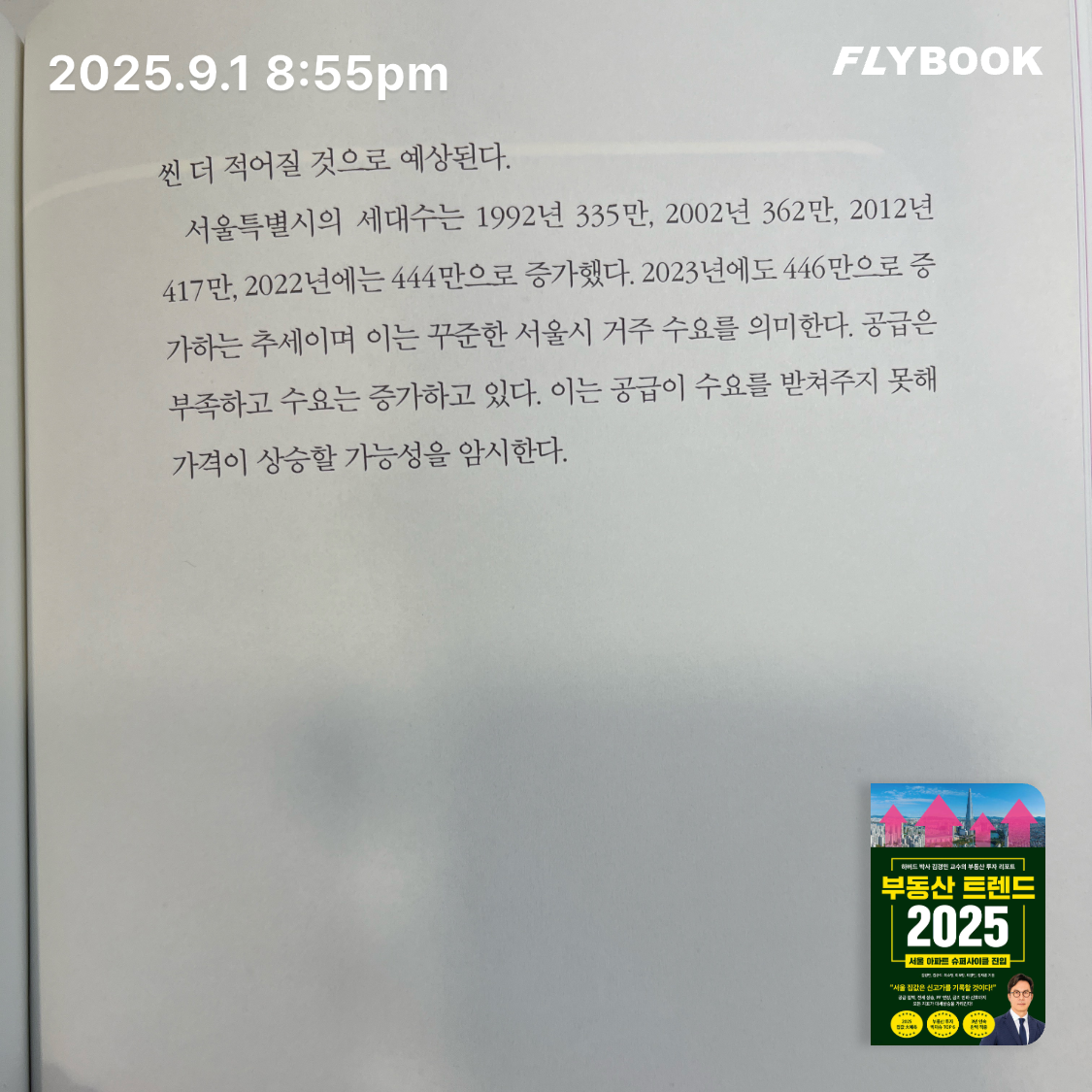 요약2025년 부동산 시장은 거시경제의 흐름과 인구 구조의 변화가 맞물려 그 어느 때보다 복잡한 양상을 띨 것으로 예상됩니다. 이 책은 단순히 집값의 등락을 예측하는 데 그치지 않고, 하버드대 도시계획학 박사인 김경민 교수를 필두로 한 전문가들이 거시 경제 지표와 데이터 분석을 통해 향후 부동산 시장의 본질적인 변화를 짚어줍니다. 🏠