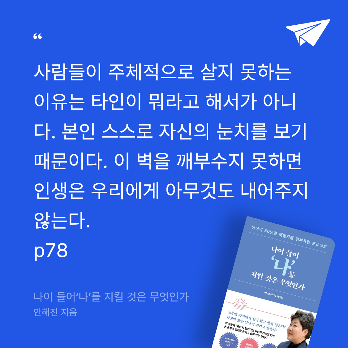 나이 불문 경력 불문, 누구라도 노후를 준비할 수 있도록 ‘복마마’ 안해진 저자의 경험담과 노하우를 나누는 책이다. 27만 구독자의 사랑을 받는 유튜브 채널 복마마TV의 운영자이자 ㈜매일옥션부동산그룹의 대표인 안해진 저자는 책 《나이 들어 ‘나’를 지킬 것은 무엇인가》를 펴냈다.