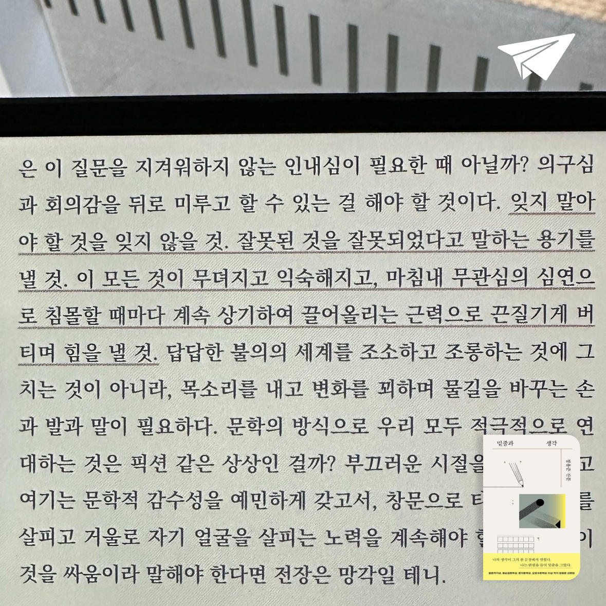 책은 크게 세 부분으로 나뉜다. 첫 번째는 독서와 밑줄의 의미다. 저자는 책에 밑줄을