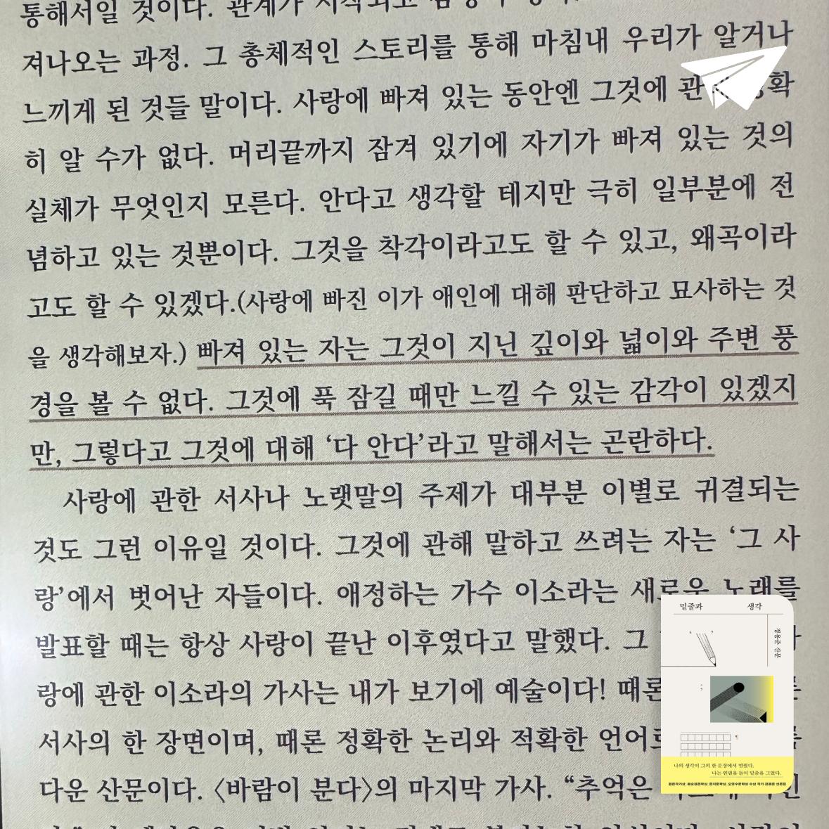 요약정용준의 밑줄과 생각은 소설가이자 문학 교사인 저자가 독서와 글쓰기를 통해 삶의 의미를 탐구하는 에세이로, 책을 읽으며 밑줄을 긋는 행위를 사유의 시작점으로 삼는다. 📖 2022년 출간된 이 책은 문학 작품의 문장들을 씨앗 삼아, 저자의 경험과 철학적 성찰을 섬세하게 엮어낸다. 독서가 단순히 지식을 쌓는 행위가 아니라, 자신과 세상을 이해하는 여정임을 보여주며, 독자에게도 그 과정을 동참하도록 초대한다. ✍️