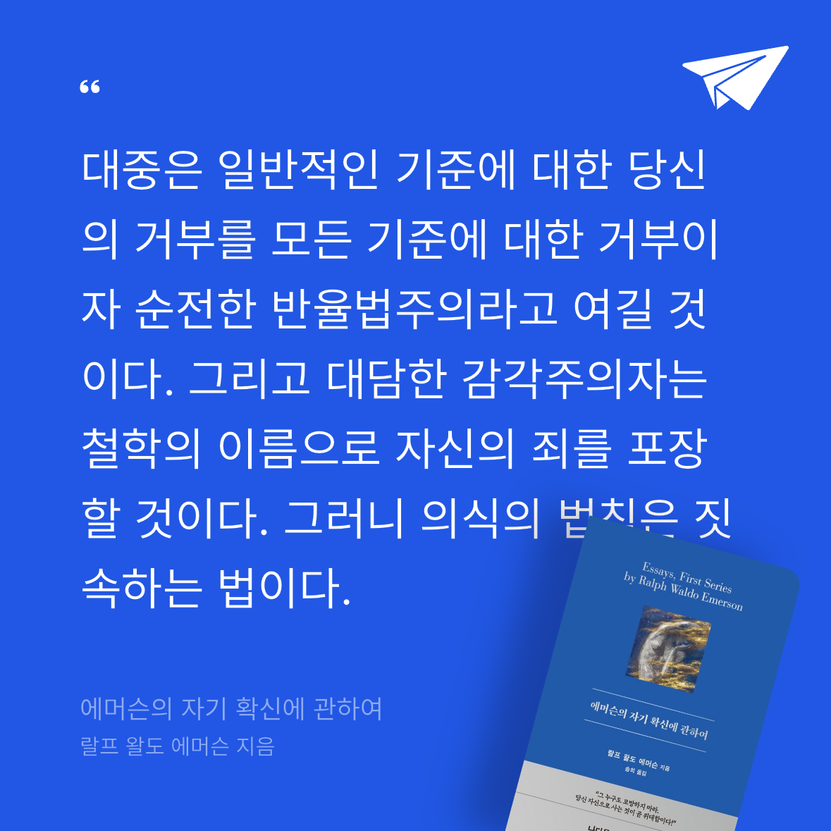 요약『에머슨의 자기 확신에 관하여』는 19세기 미국 초월주의 철학자 랄프 왈도 에머슨의 대표 에세이 “Self-Reliance”를 중심으로, 개인의 내면적 힘과 독립성을 강조하는 철학적 텍스트다. 🌟 2024년 레디투다이브에서 출간된 이 책(ISBN: 9791198999122)은 에머슨의 원문을 현대적 감각으로 번역하고, 그의 사상을 오늘날의 독자에게 맞게 재해석해 자기 계발과 철학의 교차점에서 깊은 통찰을 제공한다. 에머슨은 사회적 관습과 외부의 기대에 얽매이지 않고, 자신의 직관과