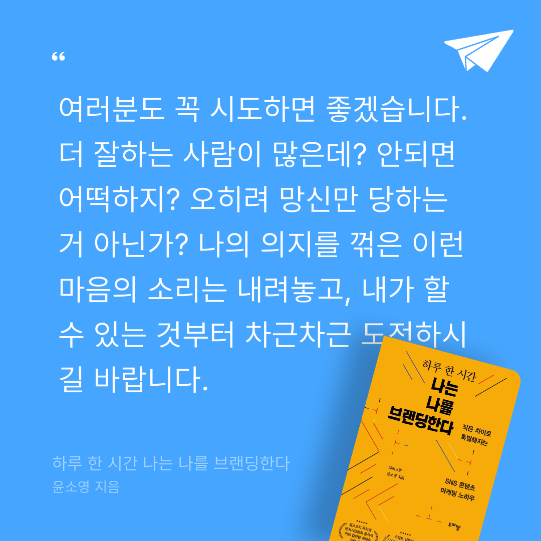 한 사람 한 사람이 브랜드가 되는 시대. 스스로 나 자신을 브랜드로 정의하고, 그 브랜드를 키워나가는 ‘퍼스널 브랜딩’은 선택이 아닌 필수다. 이 책은 콘텐츠 제작과 마케팅 전문가인 저자가 실무 경험과 자신을 브랜드로 만드는 과정에서 얻은 ‘퍼스널 브랜딩’의 인사이트를 담고 있다.