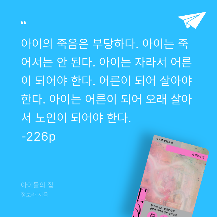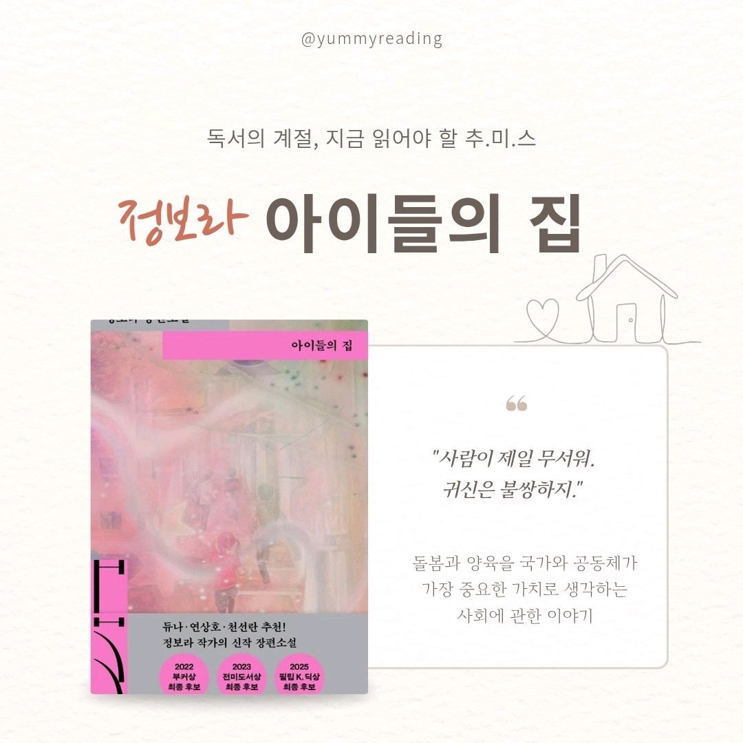 요약정보라의 장편소설 아이들의 집은 로봇 공학과 인공 자궁 기술이 발달한 근미래를 배경으로, 양육과 돌봄의 책임을 둘러싼 미스터리 스릴러다. 🌌 이야기는 ‘아이들의 집’이라는 시설에서 시작된다. 이곳은 부모가 없는 아이들을 최첨단 기술로 키우는 기관으로, 겉으로는 완벽한 돌봄 환경을 자랑하지만, 그 이면에는 불편한 진실이 숨겨져 있다. 주인공 은수는 이 시설에서 일하는 젊은 사회복지사로, 아이들에 대한 애정과 책임감으로 가득하다. 하지만 그녀는 시설의 운영 방식과 아이들의 처우에 의문을 품기