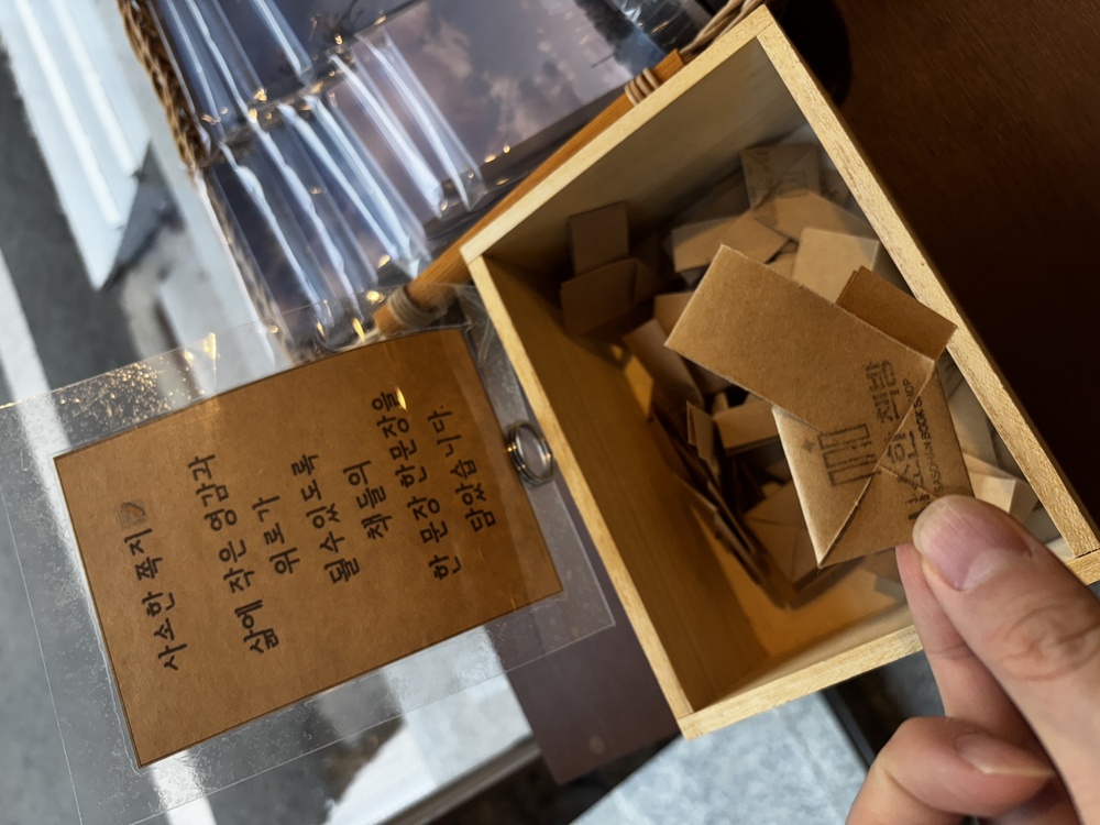 또 하나, 저희 책방에서 판매하는 독립출판물에는 대부분 작가님의 메시지가 적혀 있어요. 책을 다 읽지 않아도 그 메시지만으로도 책과 가까워지는 기분을 느낄 수 있을 거예요.