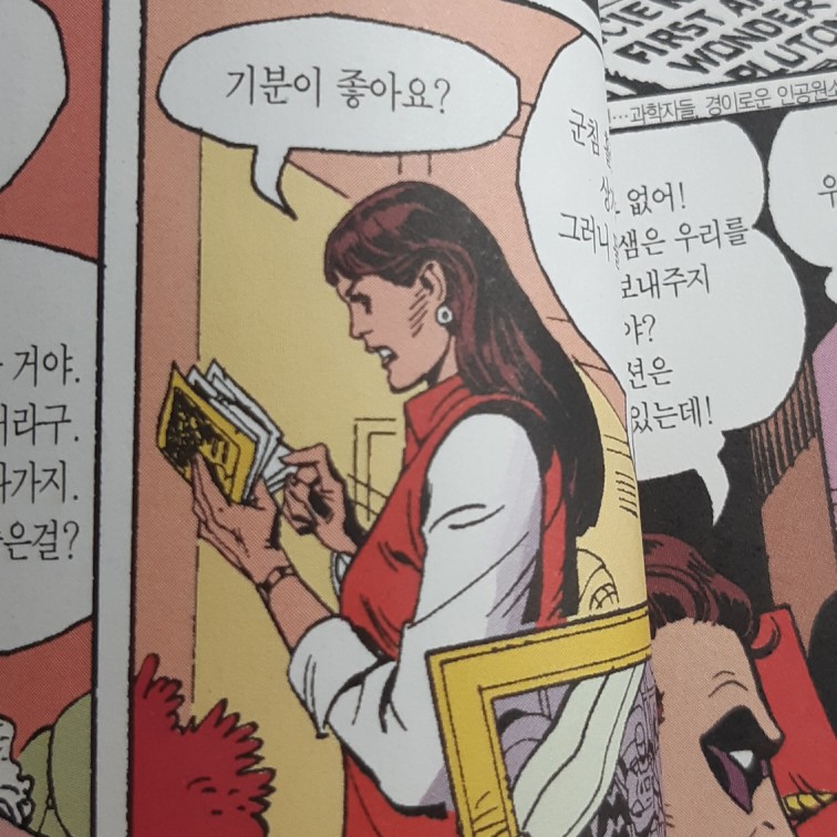 책이 접히는 부분에 말풍선도 접혀져서 읽기 어려웠다. 책을 잘못 만든것 같다.