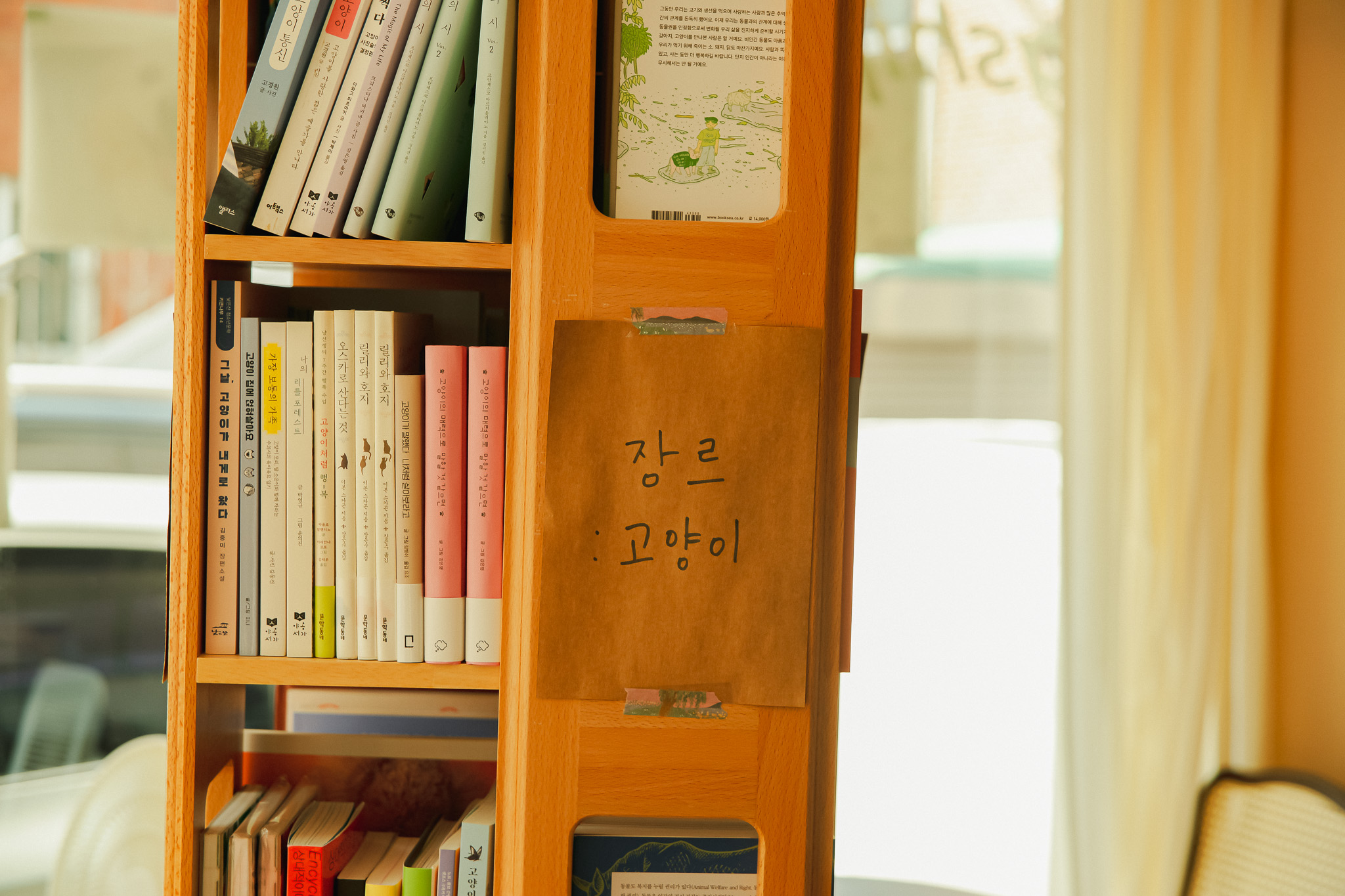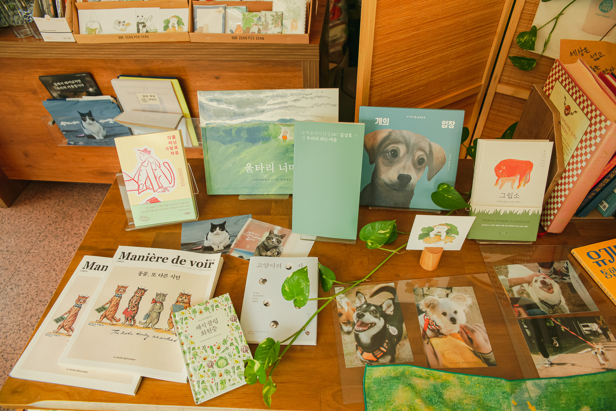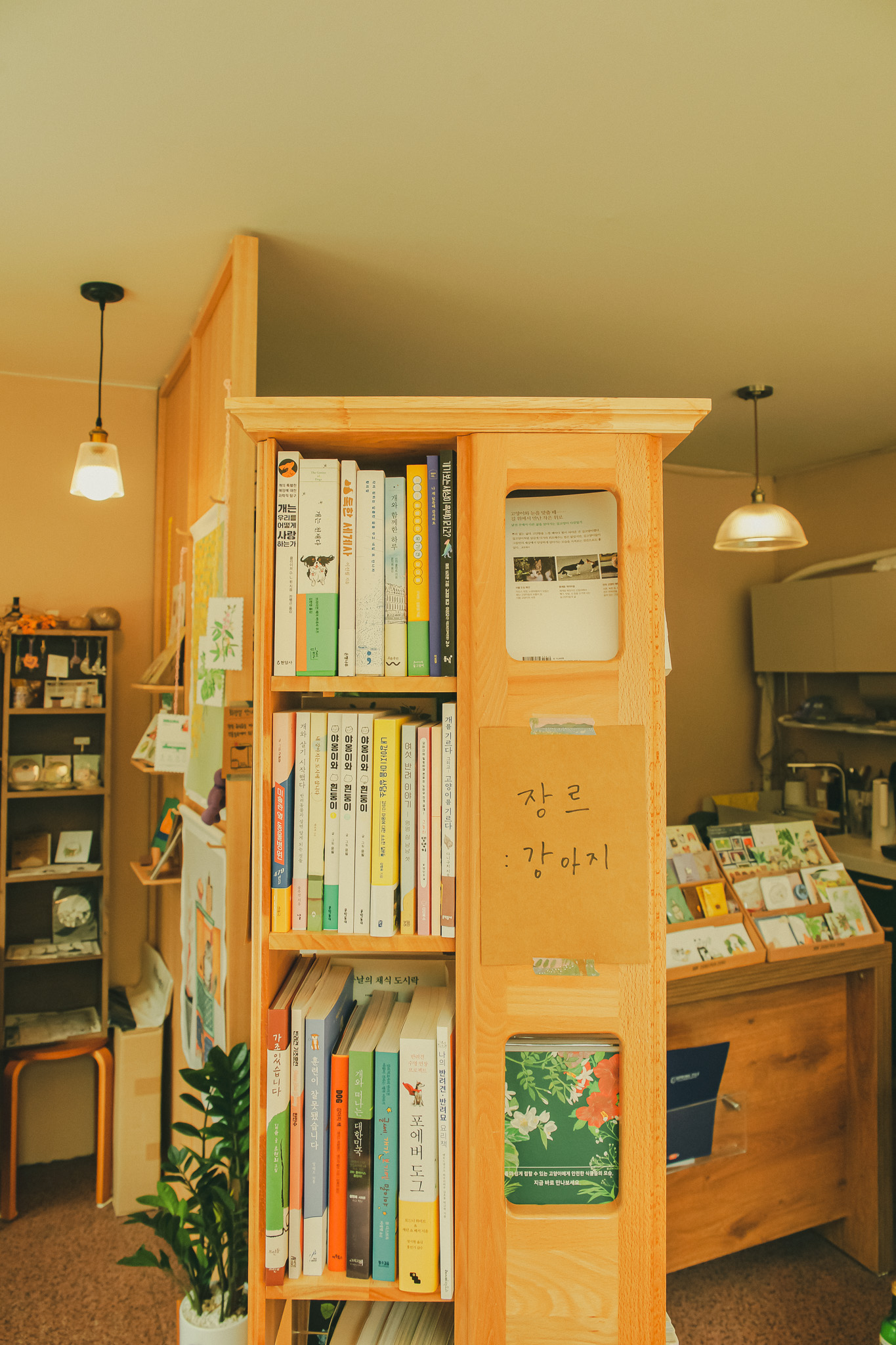 사람들이 직접 찾아올 만한 가치 있는 공간이 되는 것이 1순위였어요. 주택가 골목에 위치한 만큼 먼 곳에서도 찾아오실 수 있는 가치 있는 공간이 무엇일까 고민하다 서점을 선택했습니다. ‘핌피바이러스’ 활동을 시작하며 동물에 대한 책들에 관심이 더 가게 되었고, 임시 보호를 알릴 수 있는 공간에 대한 필요성도 느끼게 되었어요. 그래서 여러 서점 중 ‘동물 책방'이라는 정체성을 가진 공간을 만들게 되었습니다.