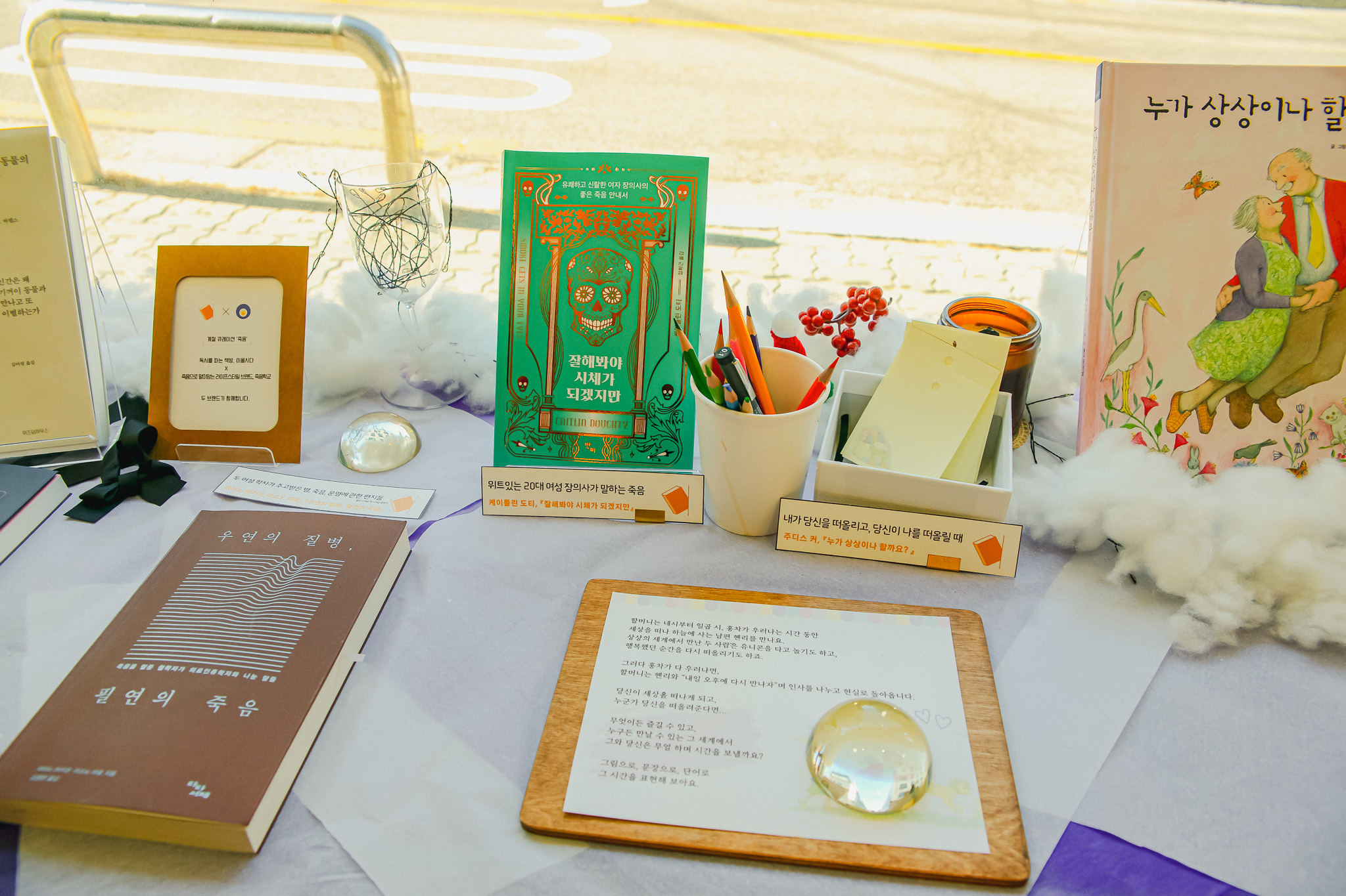 단순히 읽는 것에서 끝나는 것이 아닌 독서를 주제로 다양한 체험을 할 수 있는 공간이 되었으면 좋겠어요! 짧은 시간에 독서 경험을 체험할 수 있는 독서활동존, 계절마다 바뀌는 큐레이션, 책과 관련된 작품 전시, 위로가 필요한 이에게 추천하는 책을 담아둔 위안 서랍 등의 코너가 있는데요. 둘러보다 보면 시간 가는 줄 모르는 ‘독서라는 활동이 중심이 되는 팝업 스토어’와 같은 공간을 꾸리고 있습니다.