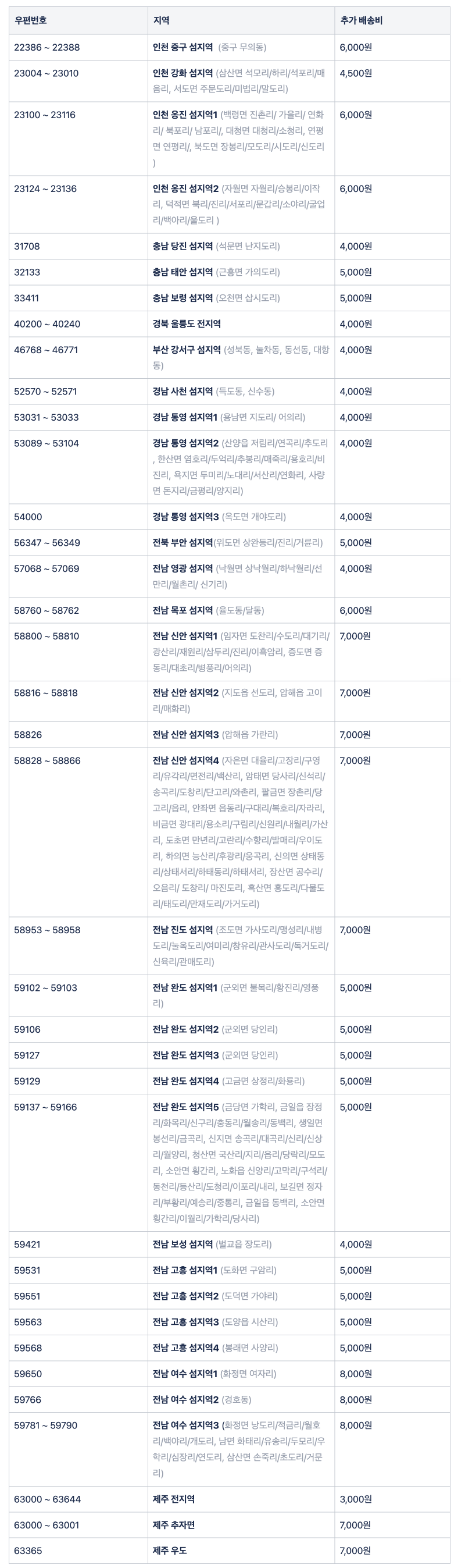 도서산간 추가 배송비 적용 안내