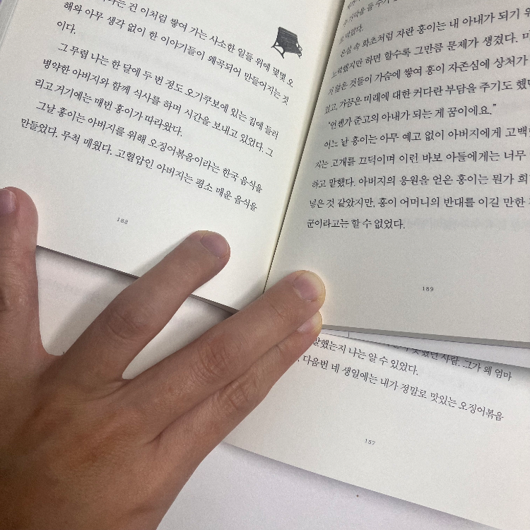 이 책은 1인칭 시점으로 이야기가 진행되는데 여러 갈등들을 보면서 아빠의 시점에서 아빠의 생각도 들여다보고싶다는 생각을 했다.
