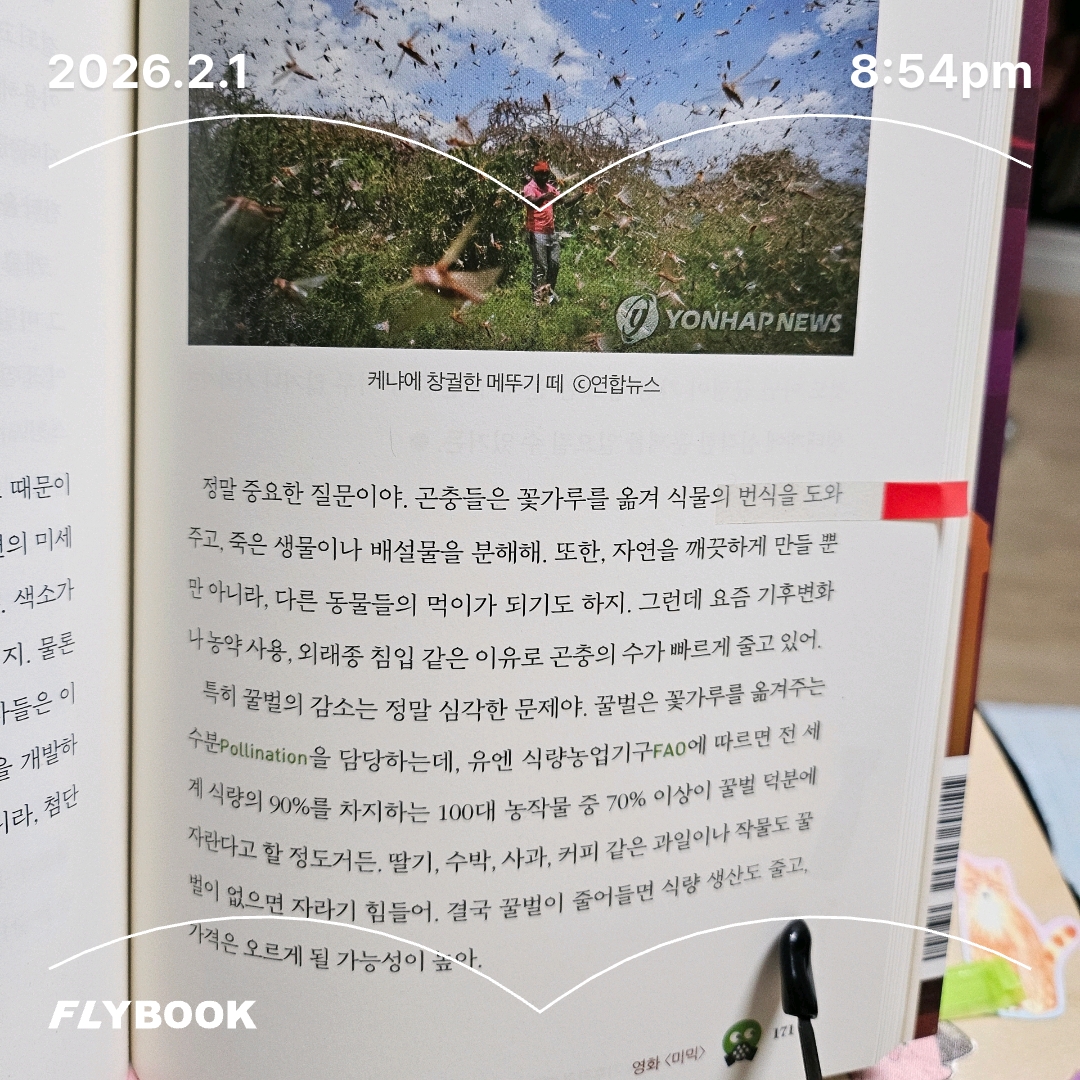 곤충들은 꽃가루를 옮겨 식물의 번식을 도와 주고, 죽은 생물이나 배설물을 분해해. 또한, 자연을 깨끗하게 만들 뿐만 아니라, 다른 동물들의 먹이가 되기도 하지. 그런데 요즘 기후변화나 농약 사용, 외래종 침입 같은 이유로 곤충의 수가 빠르게 줄고 있어.