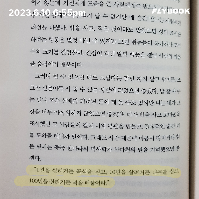 📍(p.213) 오십은 주도적인 인생으로 터닝하기에 좋은 때입니다. 오십은 타인의 삶에서 내 삶으로의 노선 변경이 가능한 때입니다. 열심히 살았지만 답답함이 있었다면 내가 원하는 삶이 아닙니다.